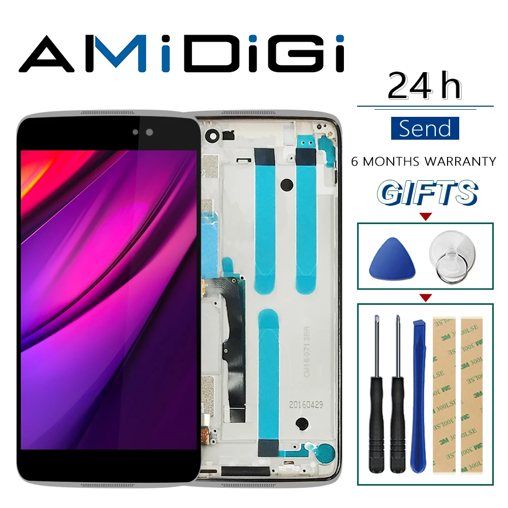 ЖК-дисплей + рамка + 6055 + для Alcatel One Touch Idol 4 LTE 6055 6055P 6055Y 6055B 6055K кодирующий преобразователь сенсорного экрана в сборе H OT6055