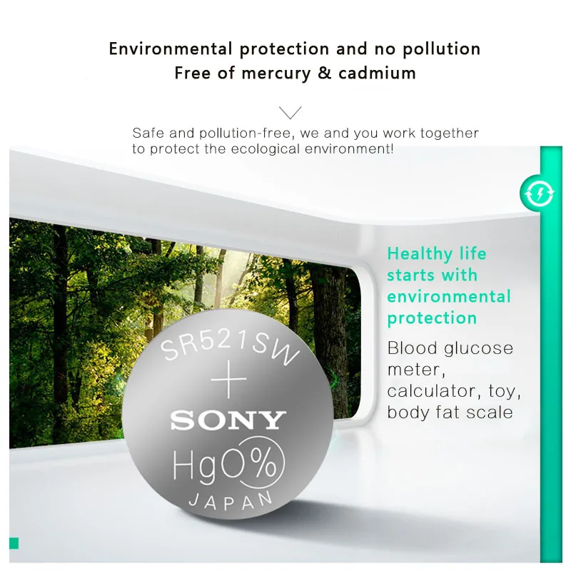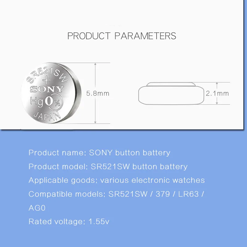 SONY Original 379 SR521SW 1,55 V Серебряная оксидная батарея CX63 521 LR63 AG0 для часов, игрушки, упаковка с одним зерном