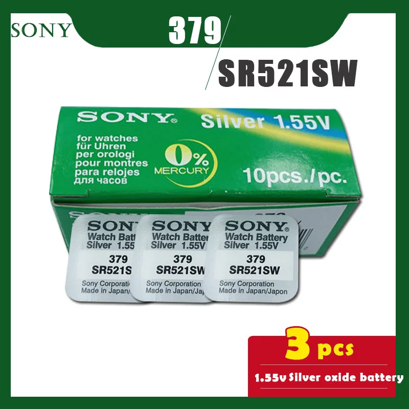 3 шт.лот, оригинальный аккумулятор SONY 379 SR521SW 1,55 V с серебряными оксидными кнопками CX63 521 LR63 AG0 для часов
