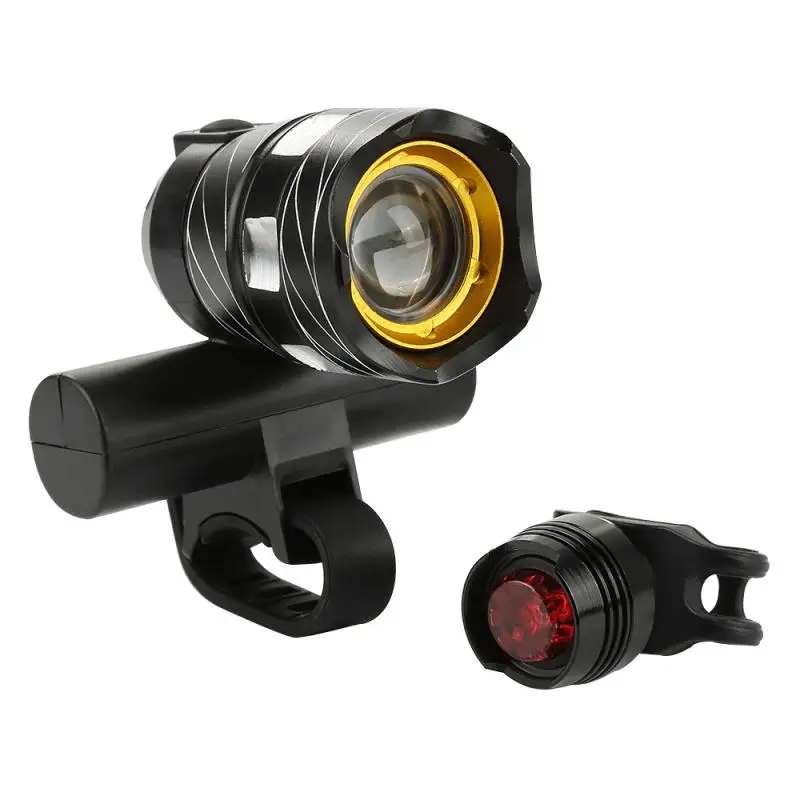 Велосипедный светодиодный передний фонарь T6, фара, задний фонарь, водонепроницаемый задний фонарь, зарядка через USB, предупреждающий сигнал, черный рубиновый задний фонарь, комплект