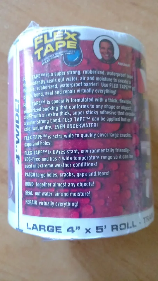 Вроде все хорошо. Вроде все верно. Но вот только у меня было ощущение, что это мягкая лента. На самом деле это покрытый клеем, довольно жесткий пластик (покупал прозрачную), который не позволит плотно заклеить рифленую поверхность, или поверхность с изгибами. Короче, если вы собрались клеить старую трубу, покрытую краской или ржавчиной - бесполезно. Это надо иметь ввиду и реклама об этом молчит. За это 4 *. На мокрую поверхность клеится, но надо тщательно выгонять воду из под ленты.