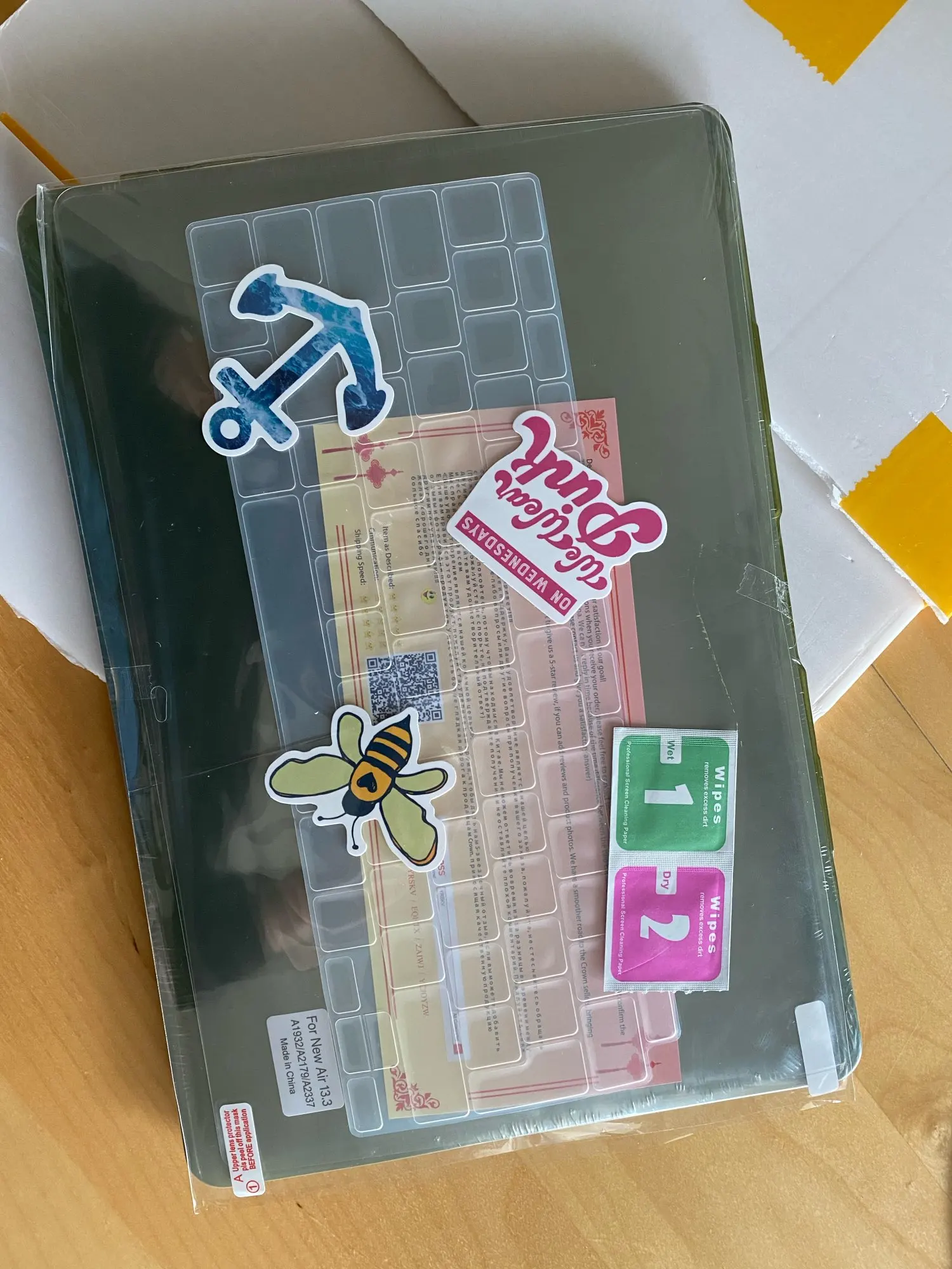 Удобный и прочный кейс софт тач. В комплекте шла пленка на экран и накладка на клавиатуру. Также продавец добавил пару наклеек. Дошло быстро, без задержек.