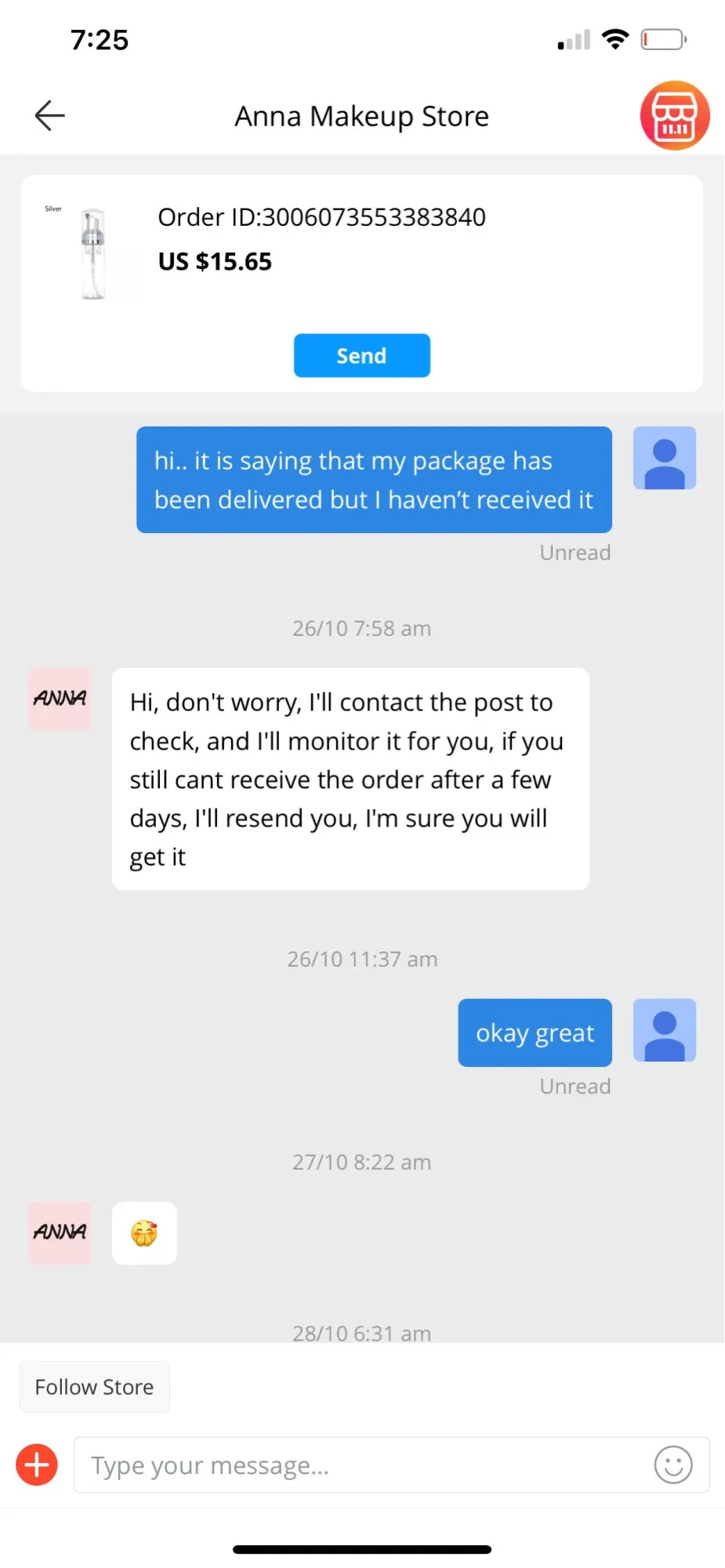 Не теряйте деньги. Я никогда не получил то, за что заплатил. Товар был доставлен 2 месяца назад, и когда я связался с продавцом, они ответили автоматическим сообщением, указав, что они проверят доставку. Когда я открываю спор, они ответили на спор с тем же автоматическим сообщением, о котором я жаловался, и руководство считает, что это нормально. Я не получил свой товар и не вернул деньги.