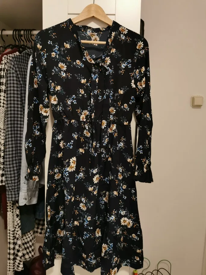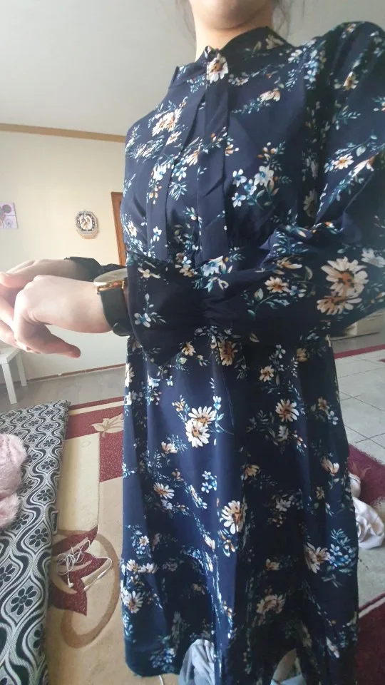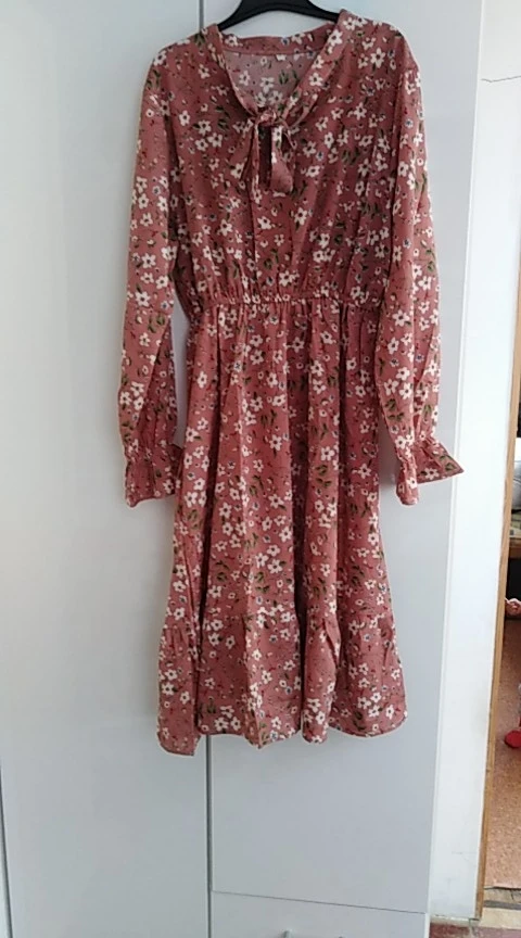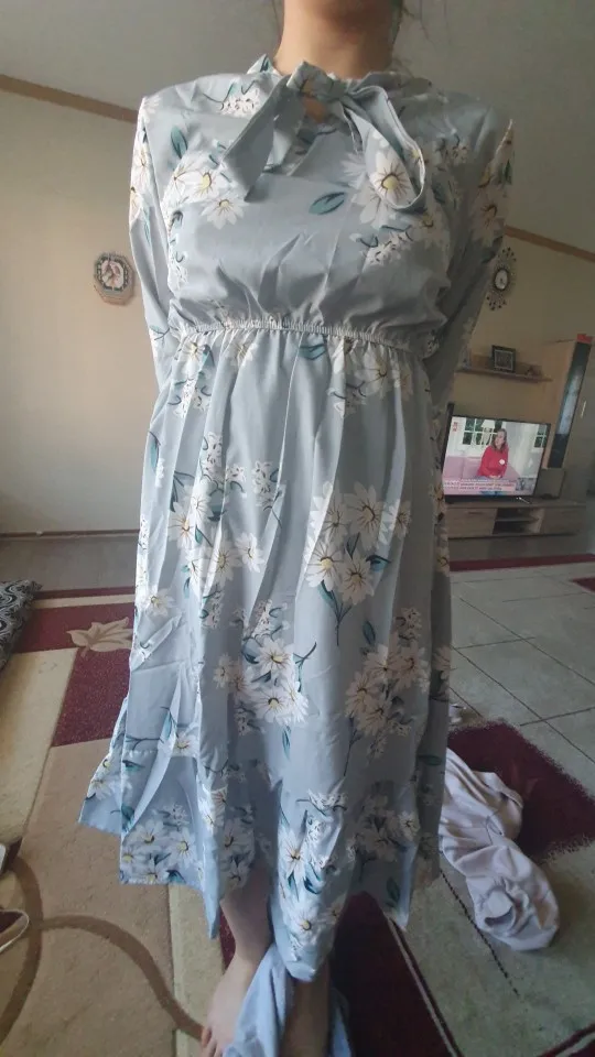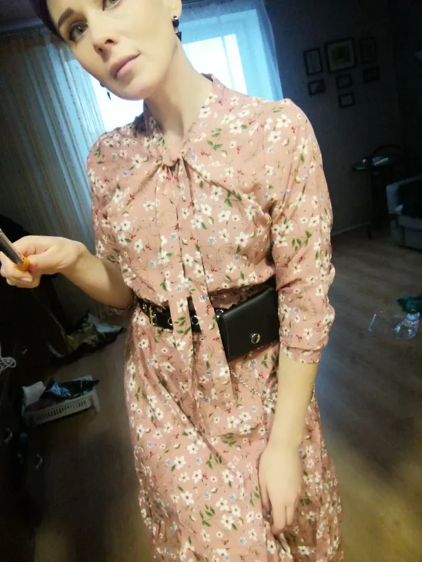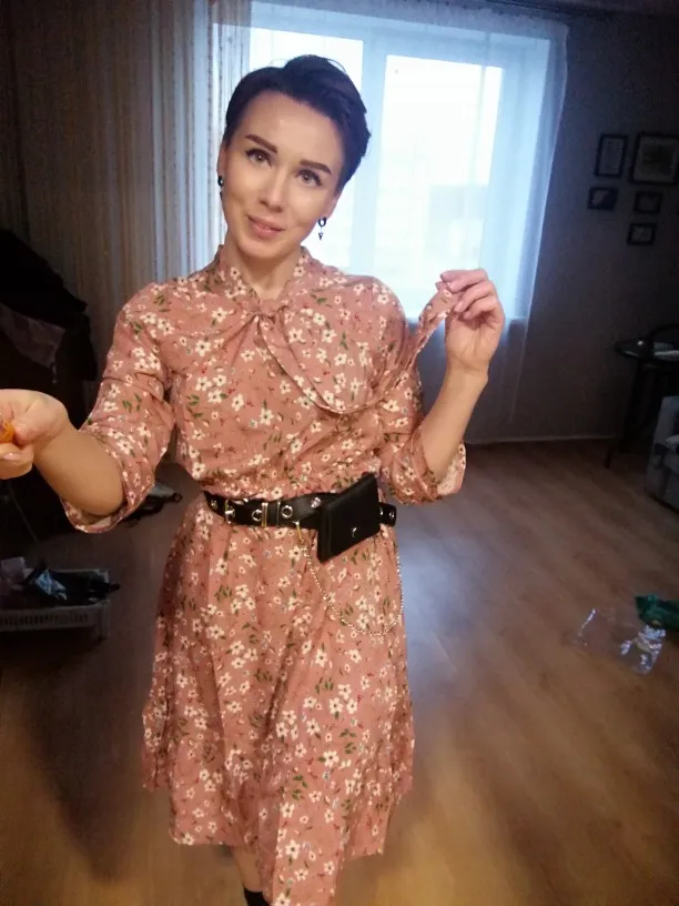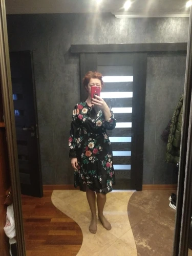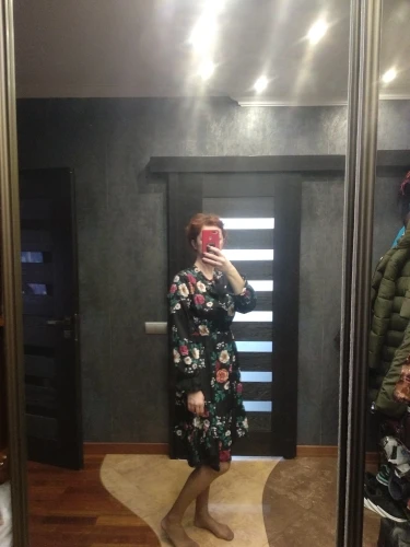 Милое платье. Мне очень понравилось. На рост 172,чуть ниже колена. Немного ошиблась с размером, взяла L, тк ранее брала другое платье размером xl и оно было достаточно свободным. Здесь другой крой, на 46-48xlбыл бы само то. В целом нареканий нет. Заказ пришёл за 2 недели.