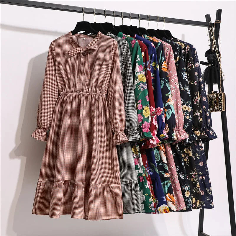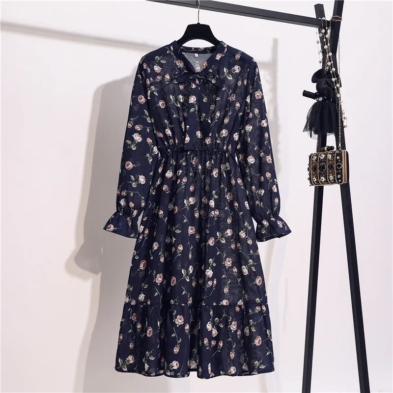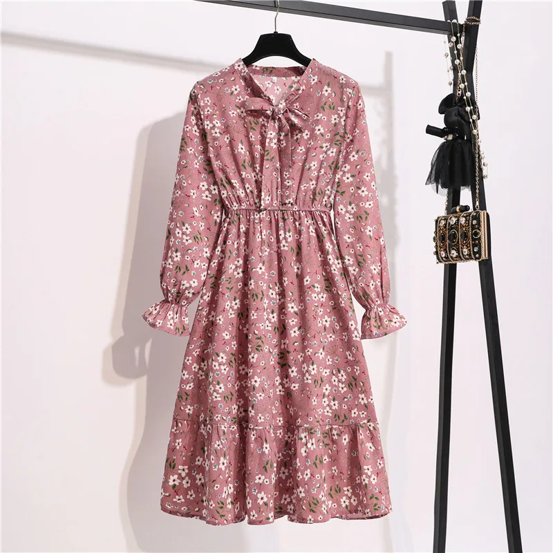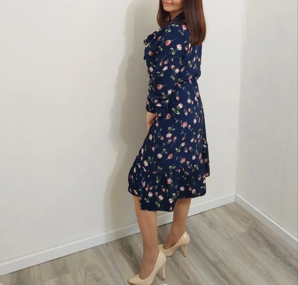 Платье женское шифоновое с длинным рукавом, воротником и цветочным принтом, 11 видов