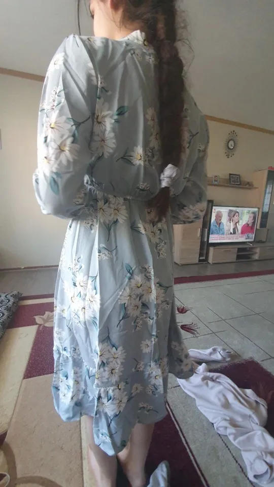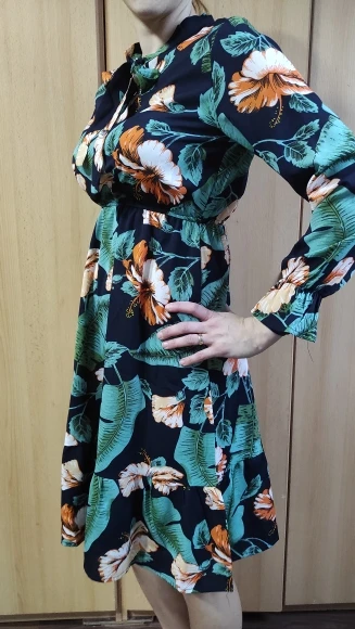 Платья очень красивые , материал чуть просвечивает на солнце , но это некритично. Синее в крупных цветах просто потрясающей красоты и идеально бы село на ОГ 96 ОТ 67, но !!!!!! На мои 170 талия получается на самом широком месте, где нижние ребра. Сестре на рост 168 село просто идеально. Красное в сердечках как - будто меньше по размеру - тоже брала L - но и на ее рост получилась талия чуть завышенной. Так что кто размер M - L и рост 164 - 168 рекомендую, кто выше - может растроиться, потому что платья действительно очень красивые и жалко с ними расставаться.
