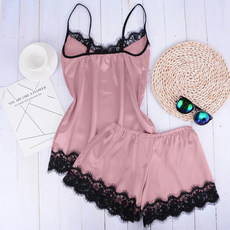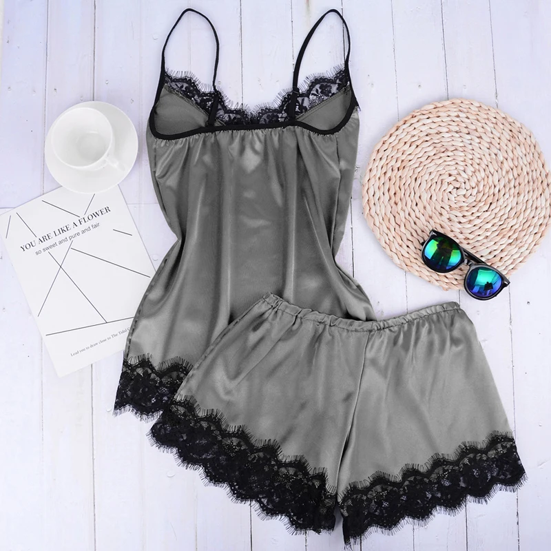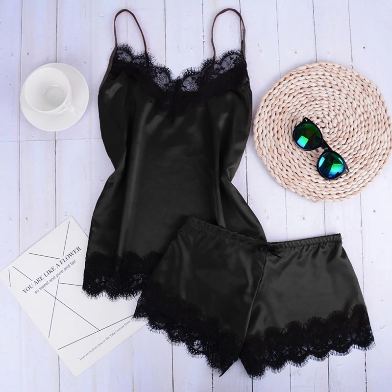 Женская атласная ночная рубашка, без рукавов, с кружевом