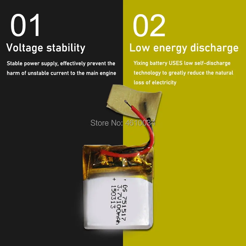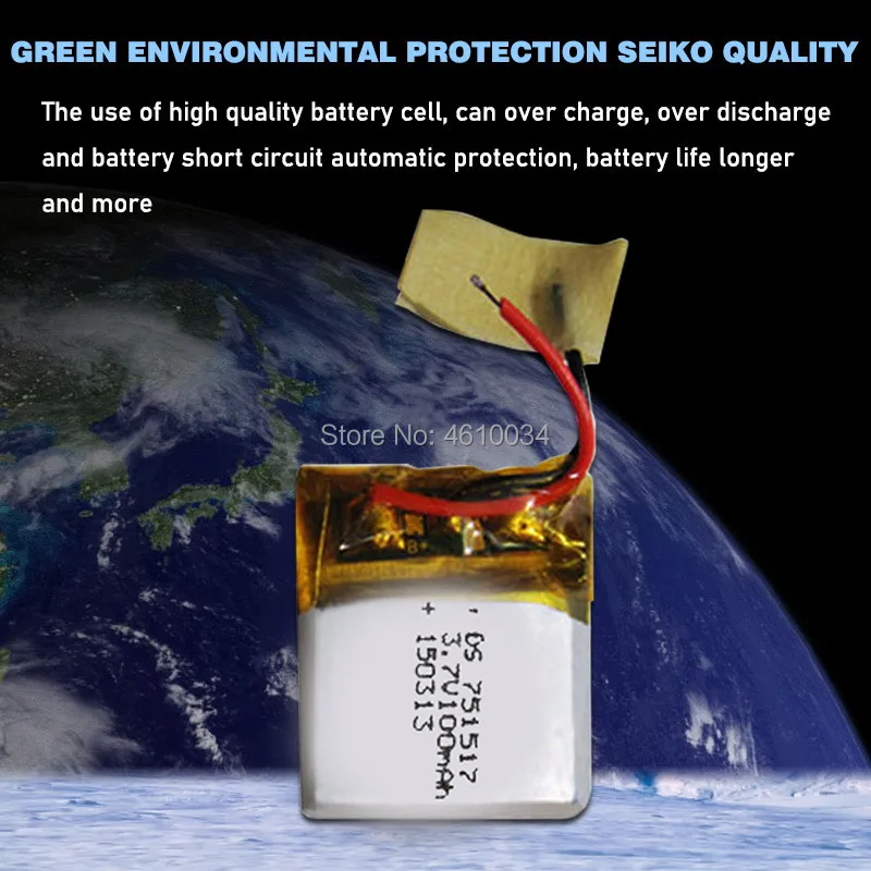 3,7 V 100mAh литий-ионная батарея 751517 литиевая полимерная аккуму...
