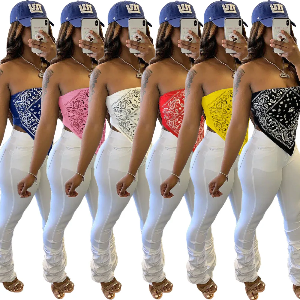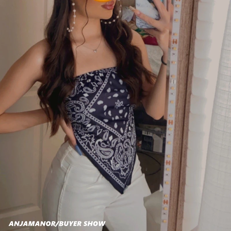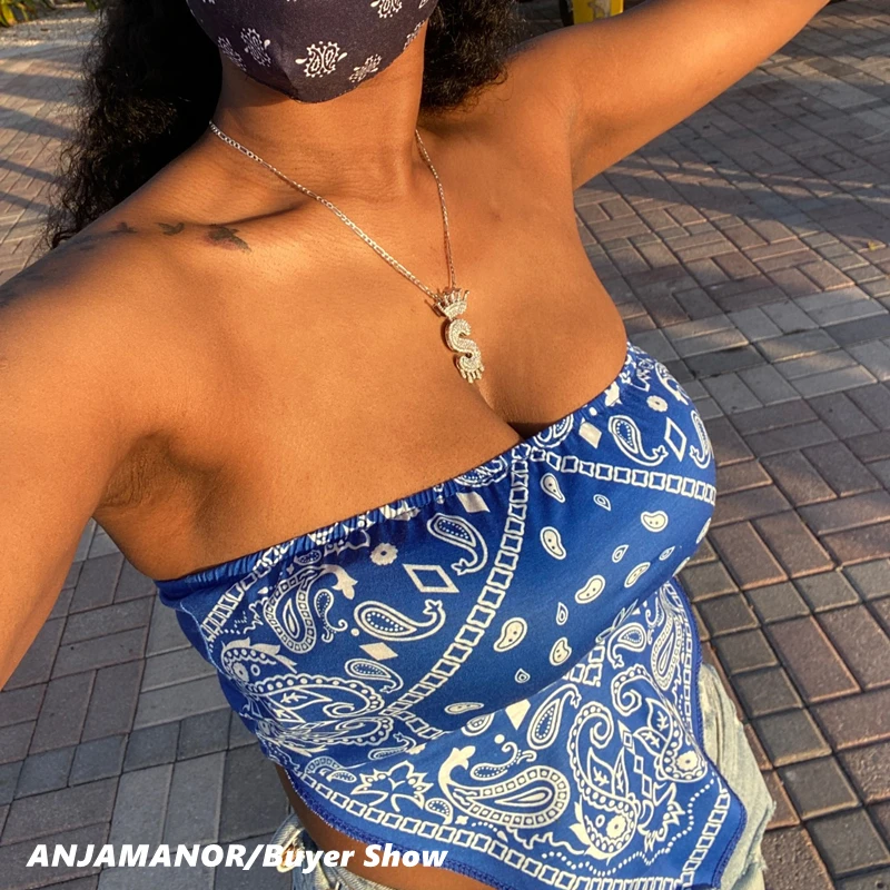 Женский короткий топ anjaview, с рисунком, бандана, с открытыми плечами и открытой спиной, лето 2020, размера плюс