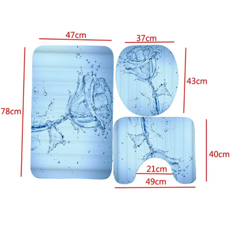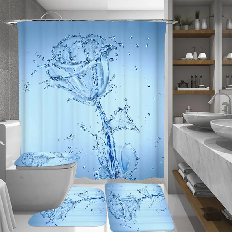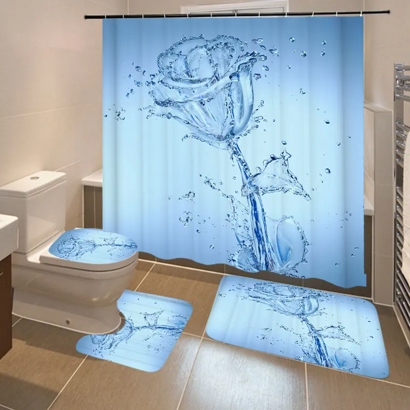 Водонепроницаемая занавеска для ванной и душа, 3D принт романтичных водных цветов, чехол для унитаза, нескользящий напольный коврик, набор для ванной комнаты