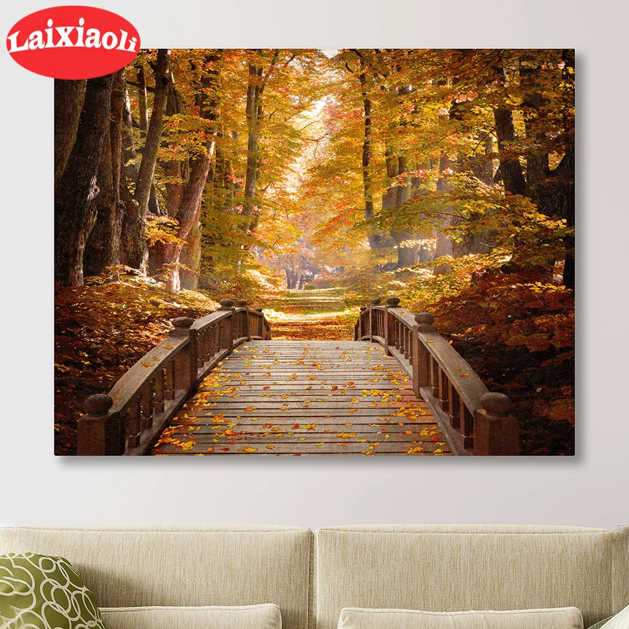 5d алмазная вышивка, осенний деревянный мост, пейзаж, алмазная живопись Сделай сам, вышивка крестиком, алмазная декоративная мозаика