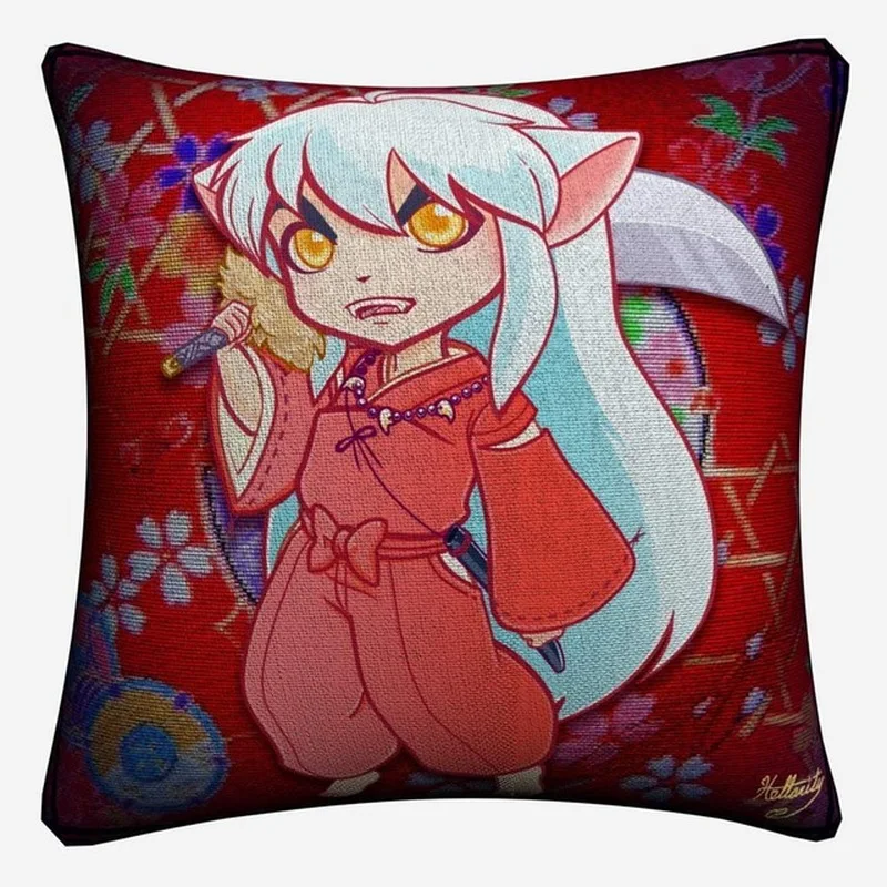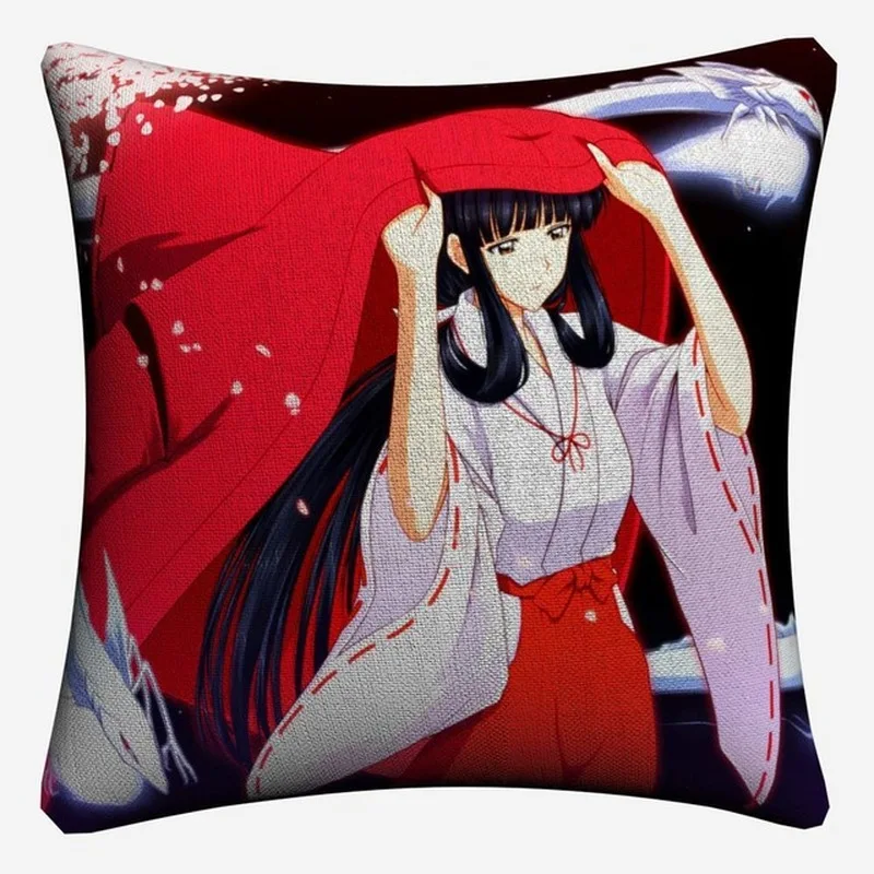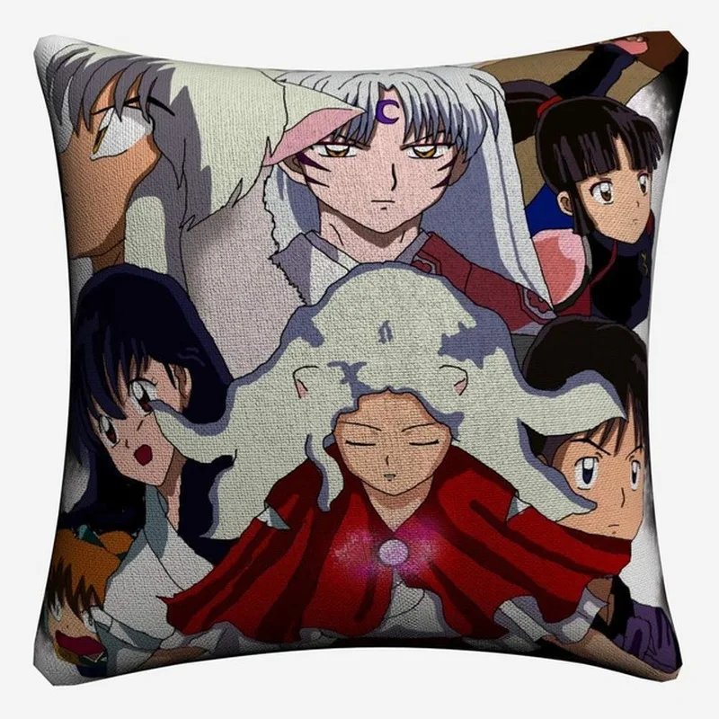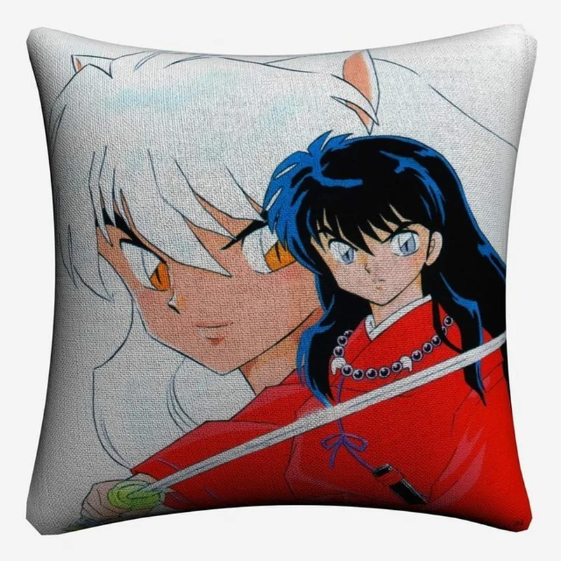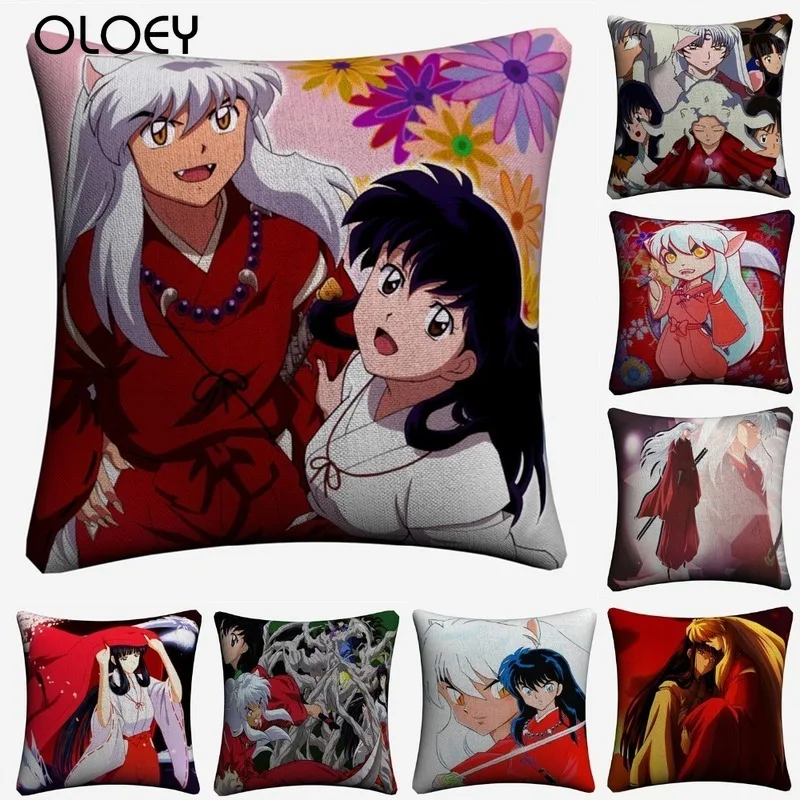 Декоративная льняная наволочка с аниме-героями Inuyasha, 45x45 см
