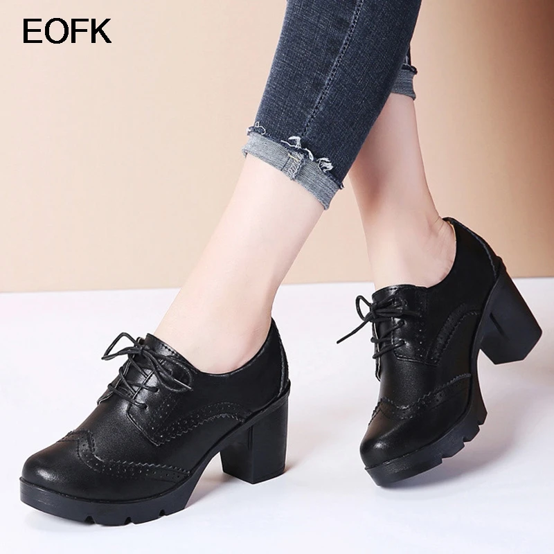 Женские туфли-оксфорды EOFK, из натуральной кожи, на высоком квадратном каблуке 7 см