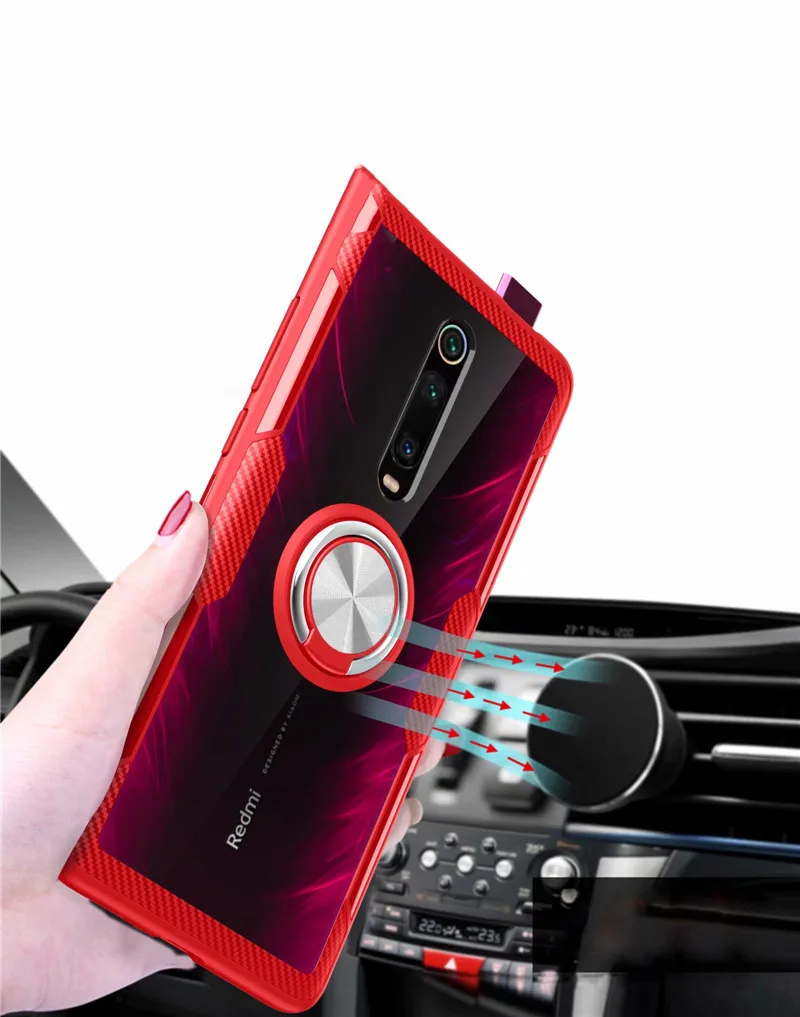 Чехол для Xiaomi Redmi K20, K30 Pro, роскошный армированный автомобильный держатель, чехол с кольцом для Mi9T, Mi 9T Pro, Poco X2, прозрачный стеклянный чехол