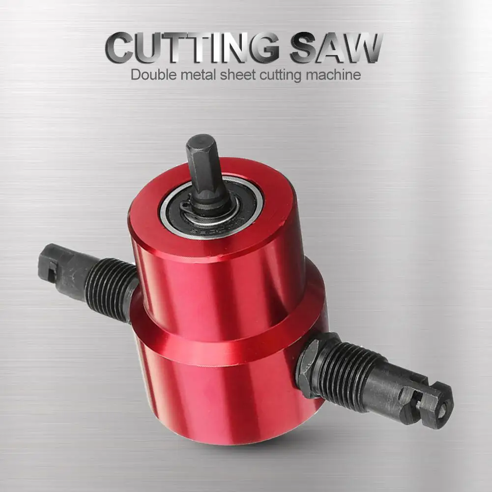 Двухконцевая жесткая режущая машина может быть закреплена на общей электрической дрели, пневматическом инструменте или сверлильной машине, чтобы сделать произвольную резку на металлической пластине, установить резку прямой, циркулярная резка аксессуаров будет более точной.