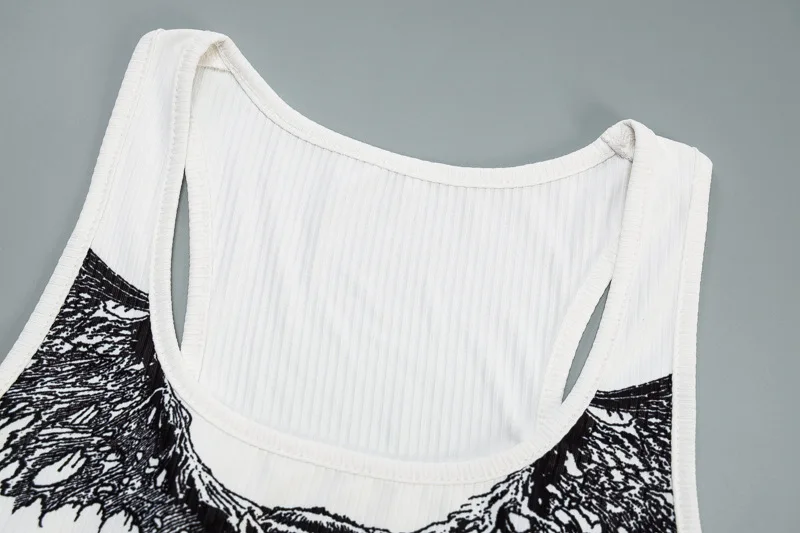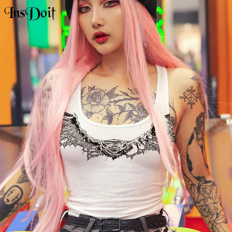 Женская блузка без рукавов InsDoit, белая облегающая блузка в готическом стиле, с принтом в виде животных, летняя уличная одежда в стиле Харадзюку