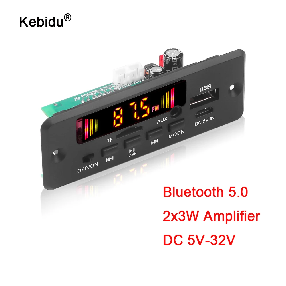 Плата декодера kebidu для MP3-плеера, 5-32 В, Bluetooth 5,0, 6 Вт, усилитель, автомобильный FM-радио, поддержка FM, TF, USB, AUX, рекордеры