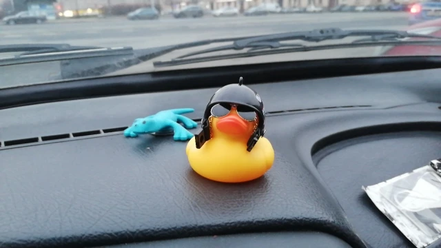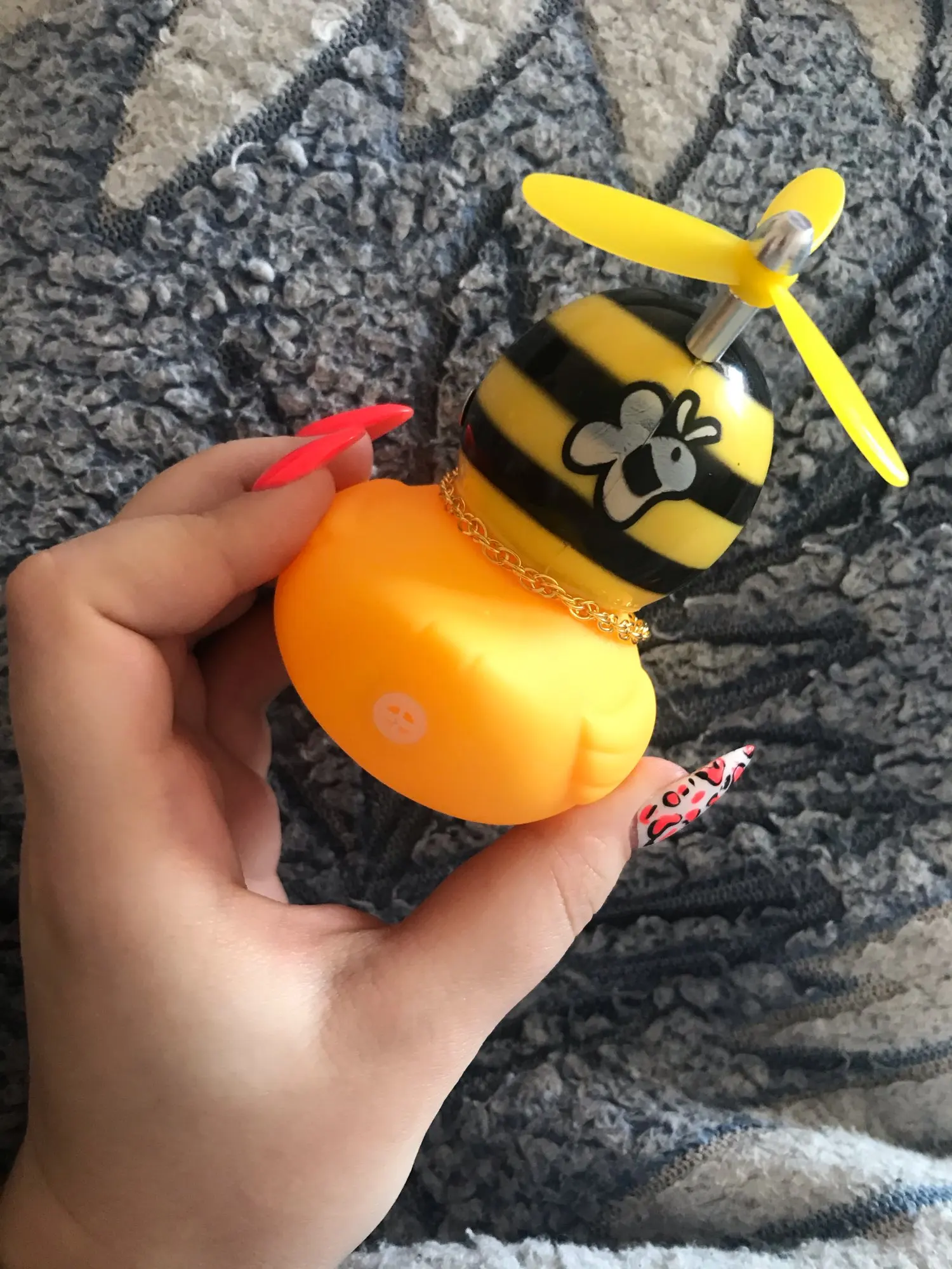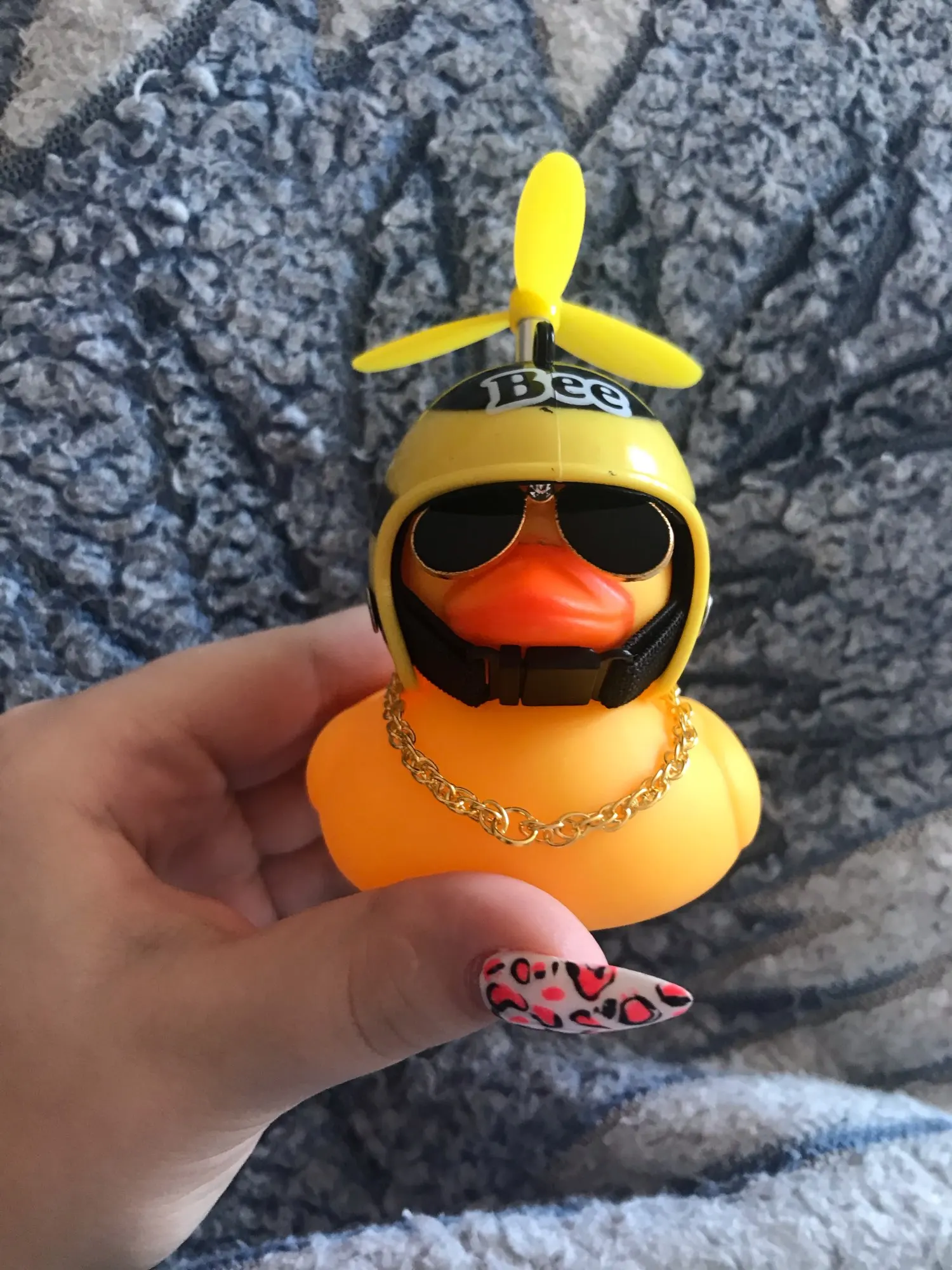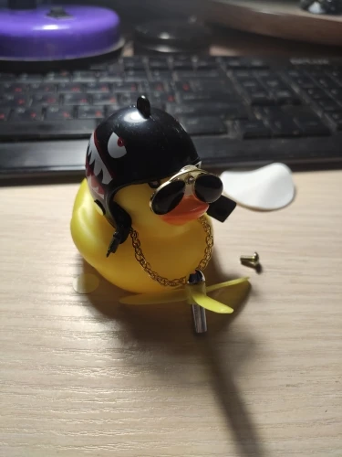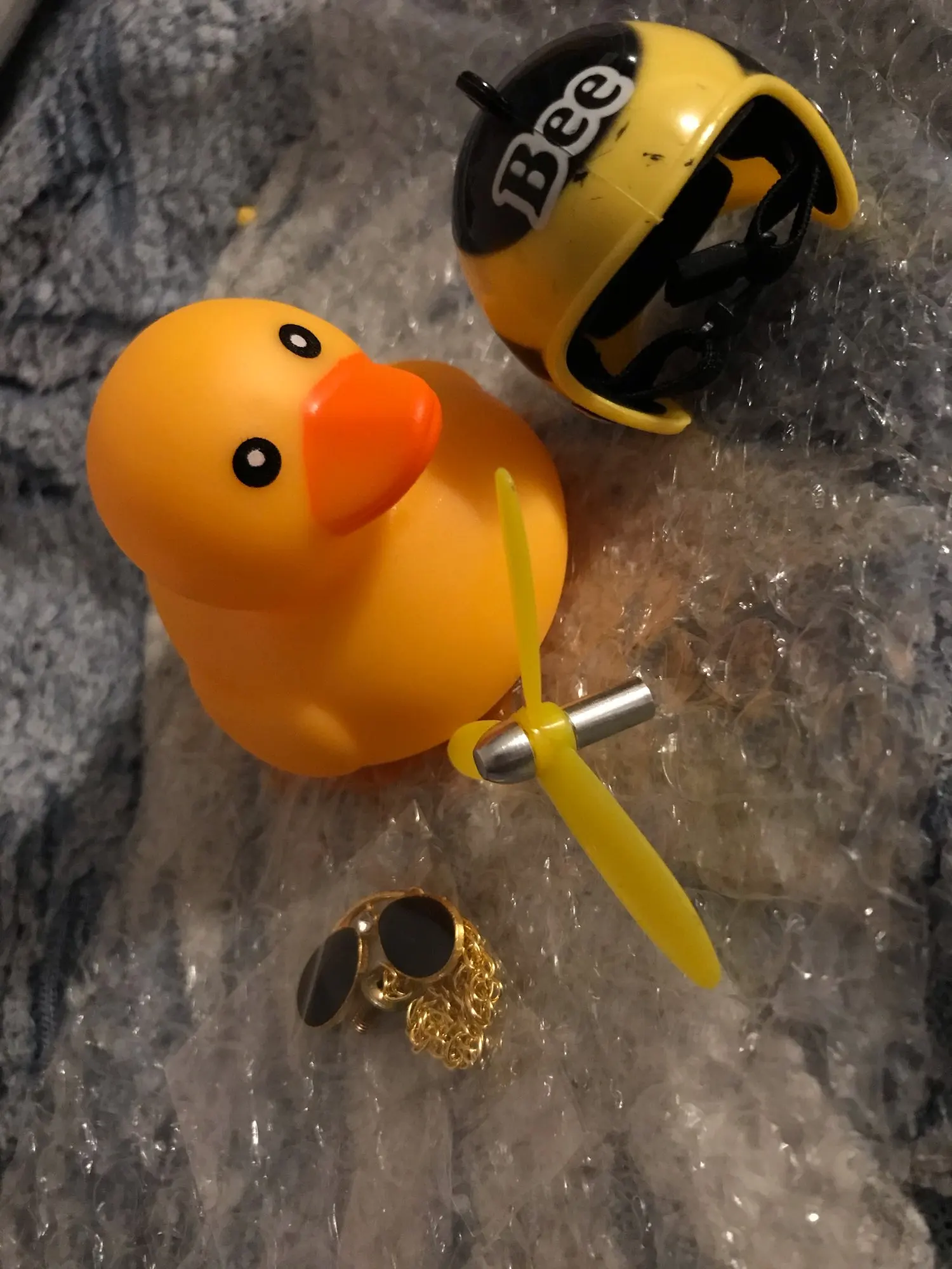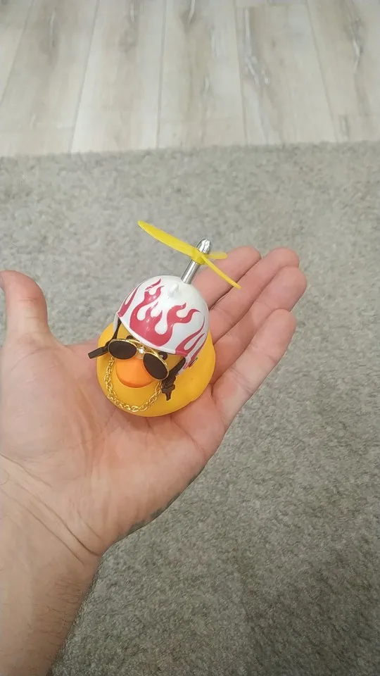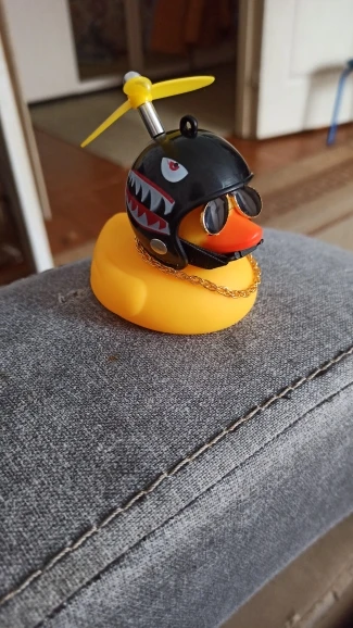The duck head is super smoll so it looks kinda stupid with the helmet. But it still looks cute.