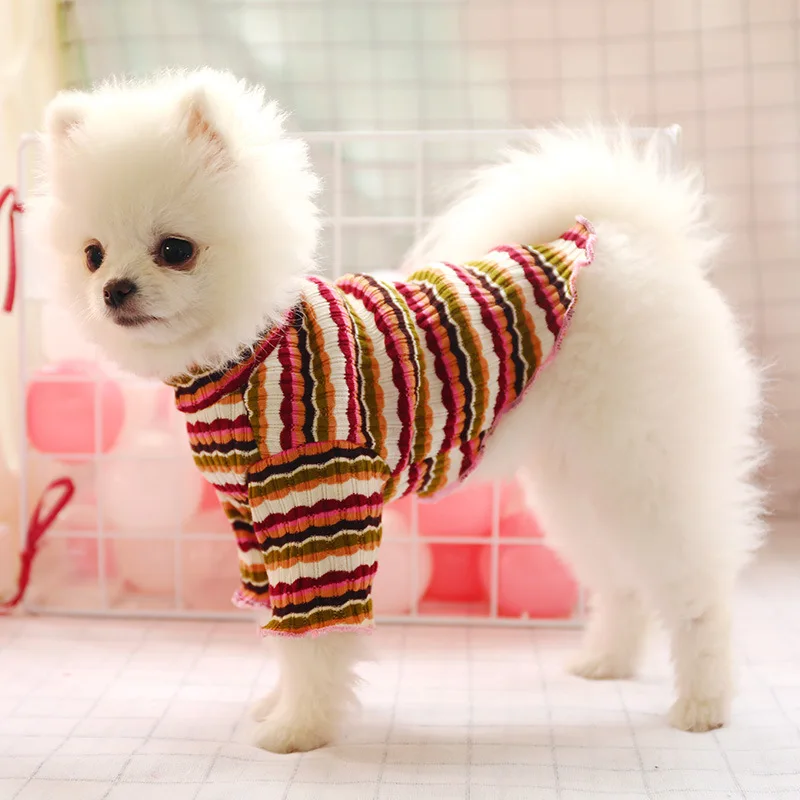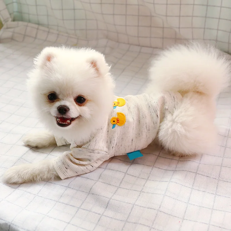 Рубашка с принтом милой утки для собак и кошек, свитер, осенняя полосатая одежда для маленьких собак, одежда для домашних животных, рубашки для щенков чихуахуа, йоркширских терьеров