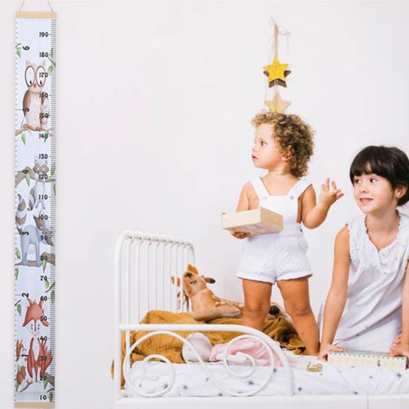 Линейка с мультяшным рисунком для детей, с записью роста, с деревянной рамкой, для мальчиков и девочек, для украшения стен комнаты