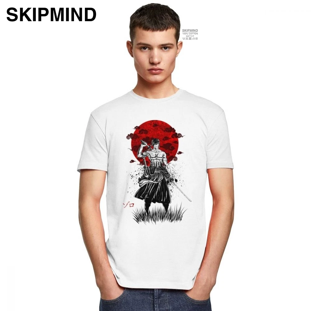 Зоро Roronoa футболка для мужчин 100% хлопковая цельнокроеная футболка с о-образным вырезом с коротким рукавом фехтовальщика футболка Пиратская футболка с изображением охотника одежда Мерч