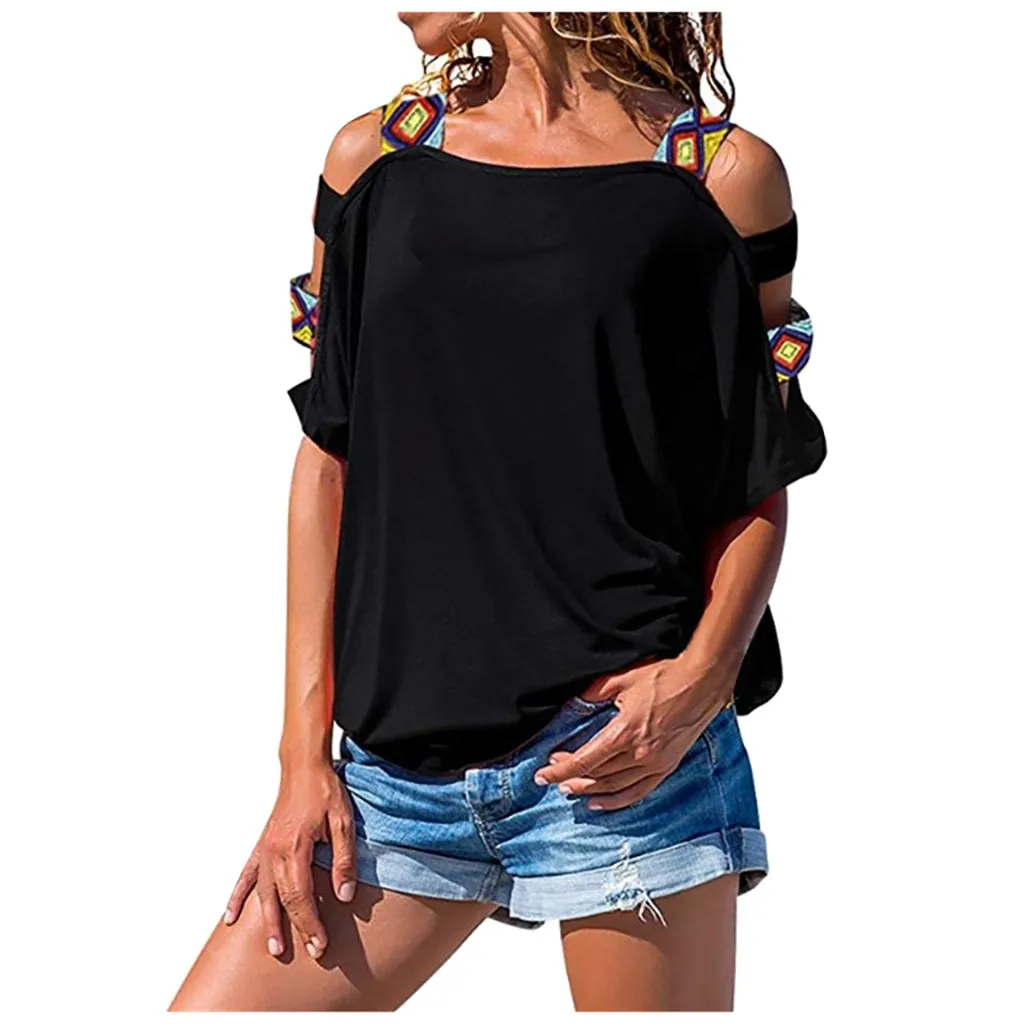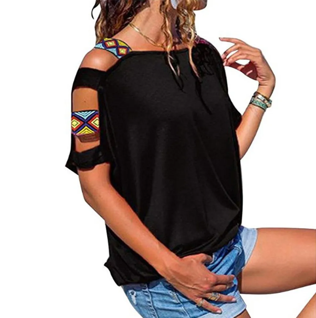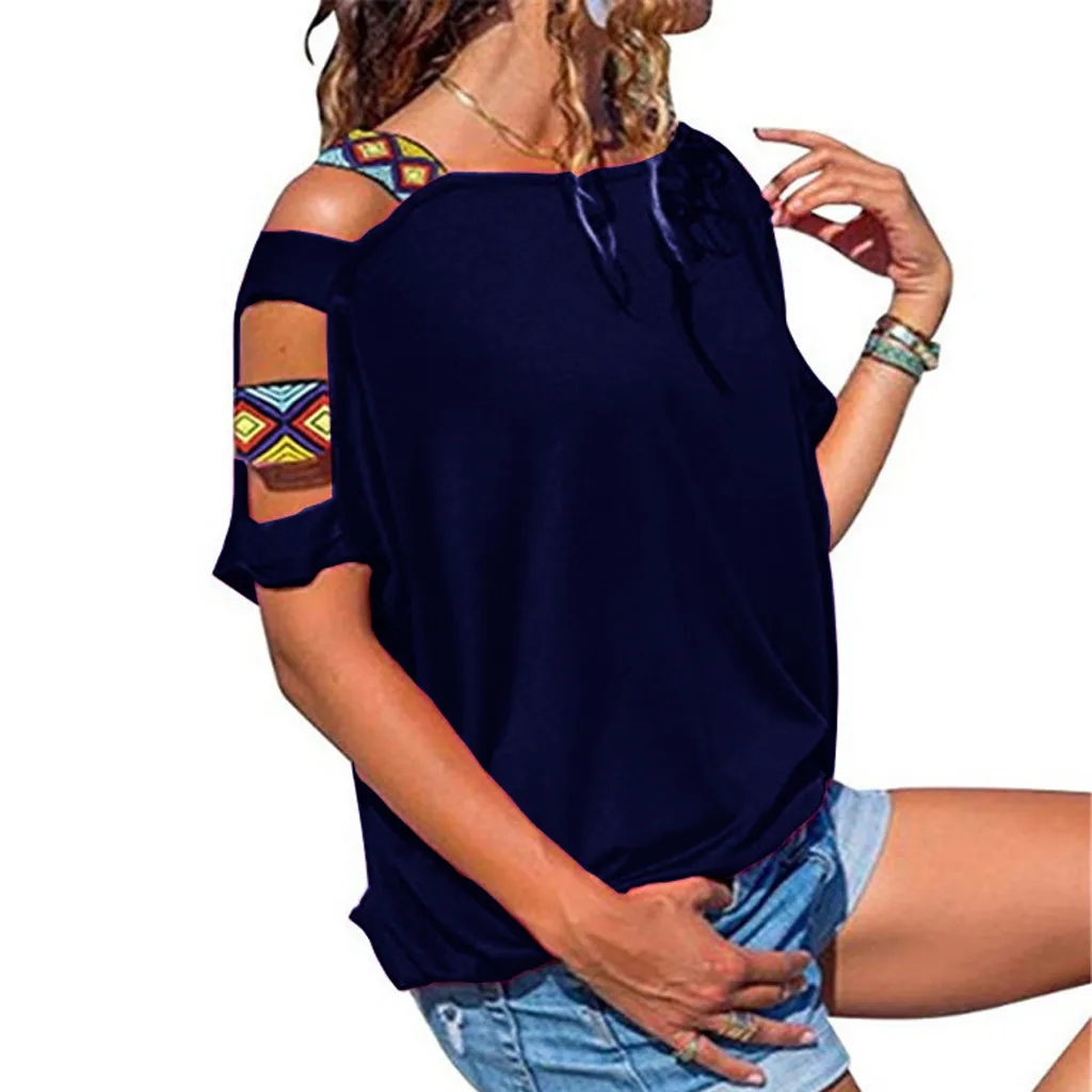 Женская ажурная блузка с круглым вырезом, свободные топы в стиле кэжуал, летний женский топ с коротким рукавом