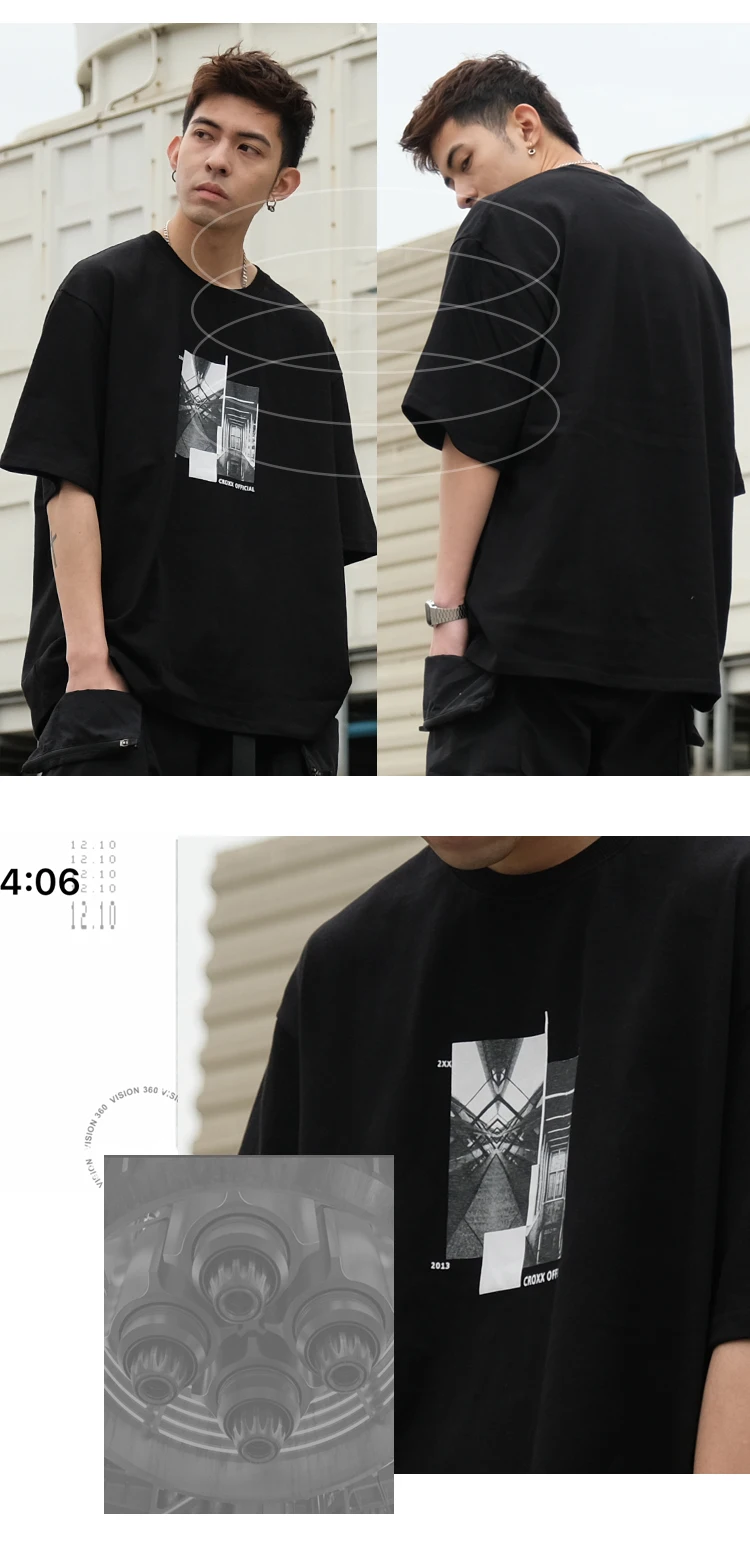 Мужская хлопковая футболка CROXX Techwear с графическим рисунком рабочее пространство в стиле хип-хоп, панк, модная уличная одежда