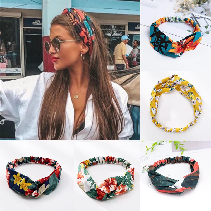 Повязка на голову женская с принтом растений, тюрбан с перекрестным...
