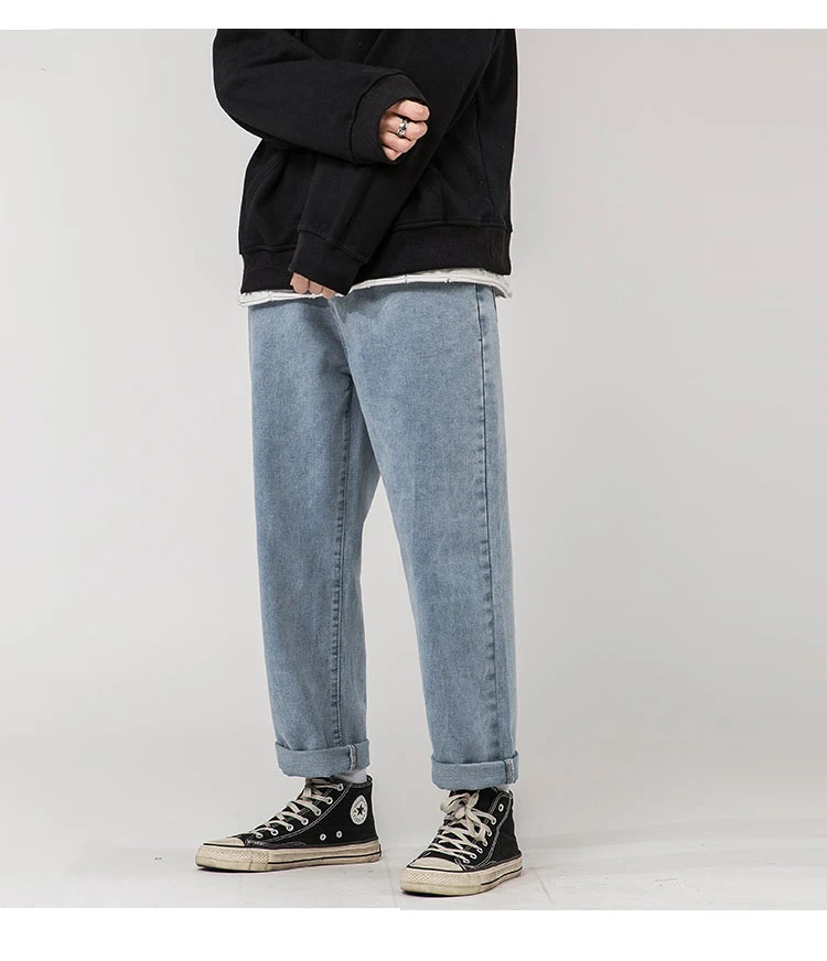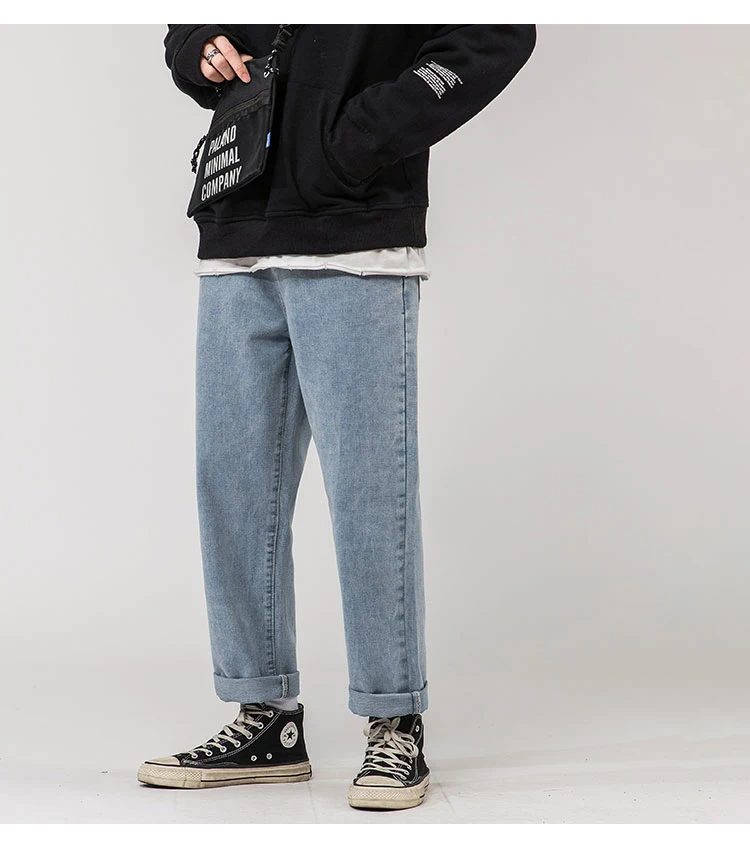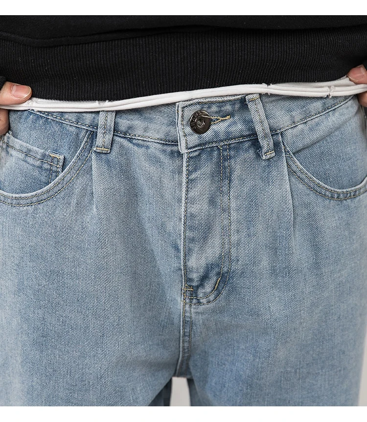 Джинсы мужские, мешковатые, с высокой талией, однотонные, 2021
