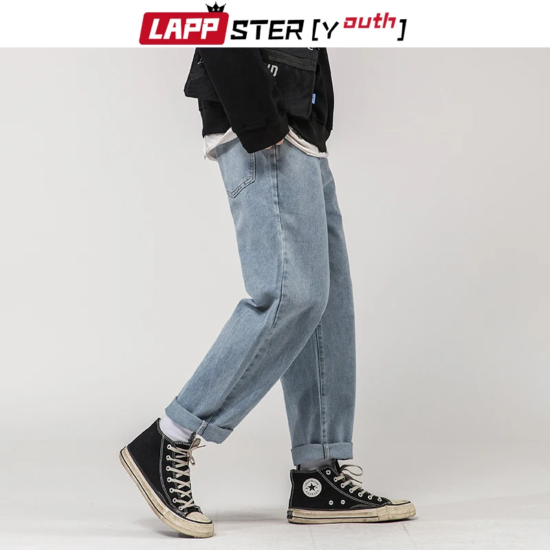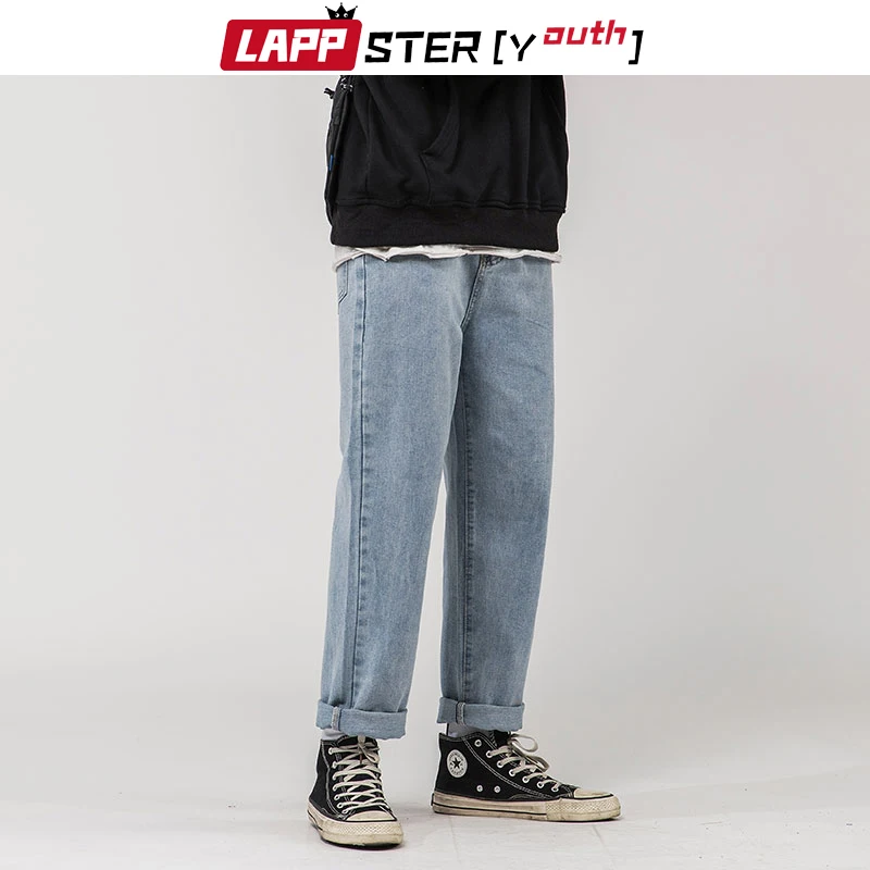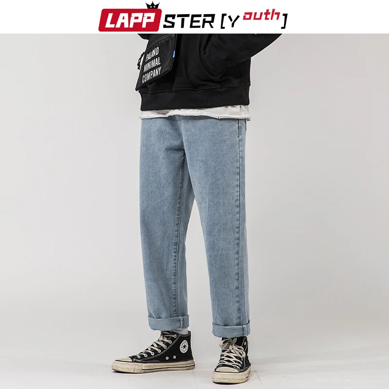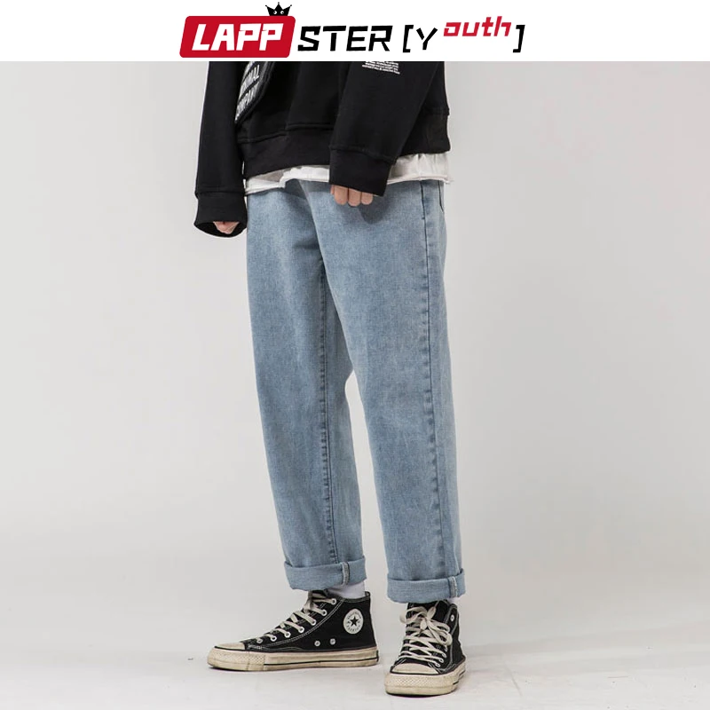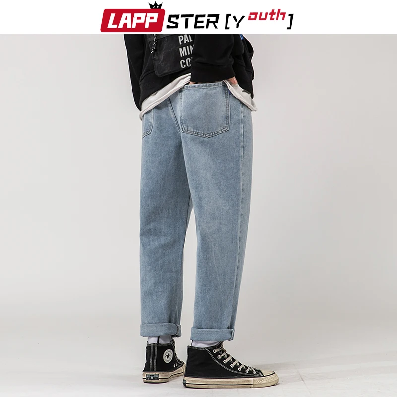 Мужские джинсы LAPPSTER, голубые однотонные винтажные штаны из прямого денима, модель 5XL в Корейском стиле, 2021