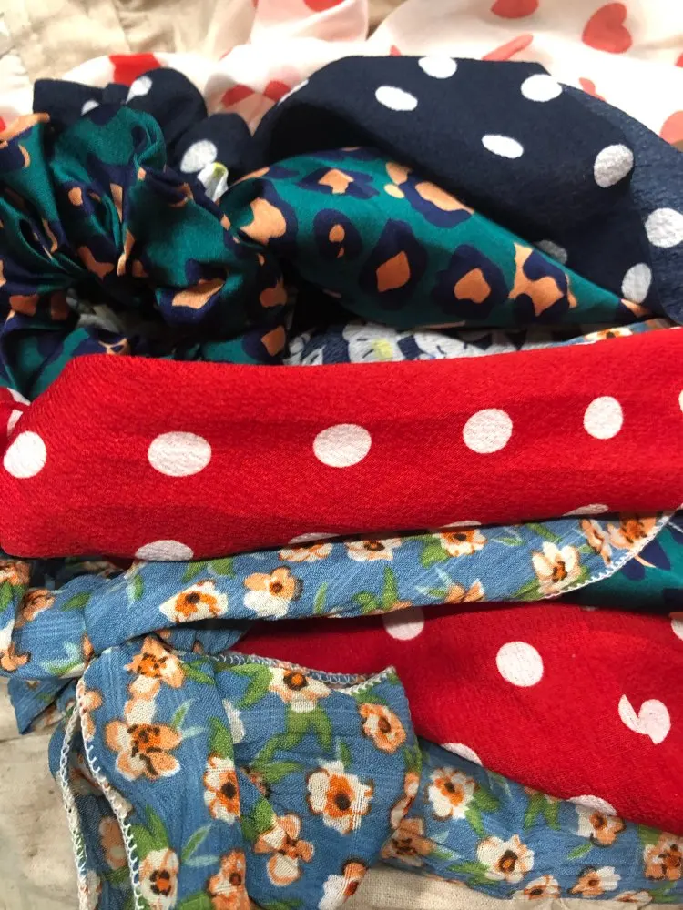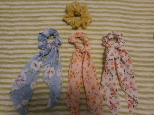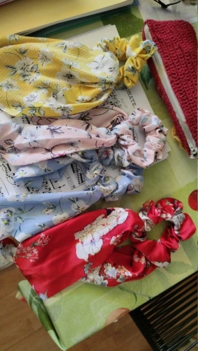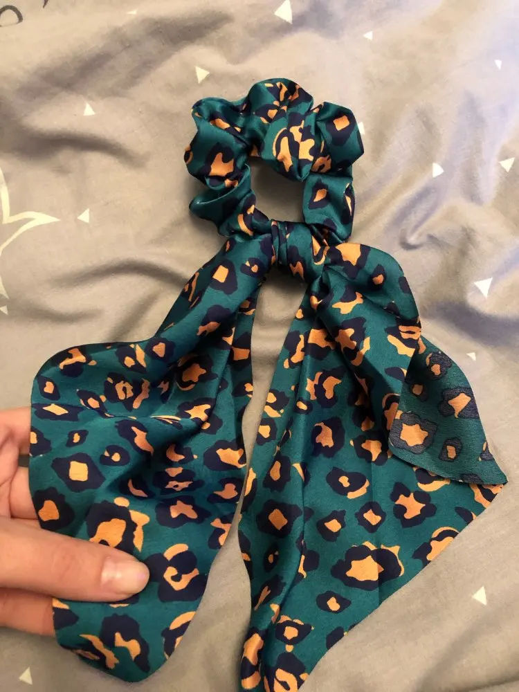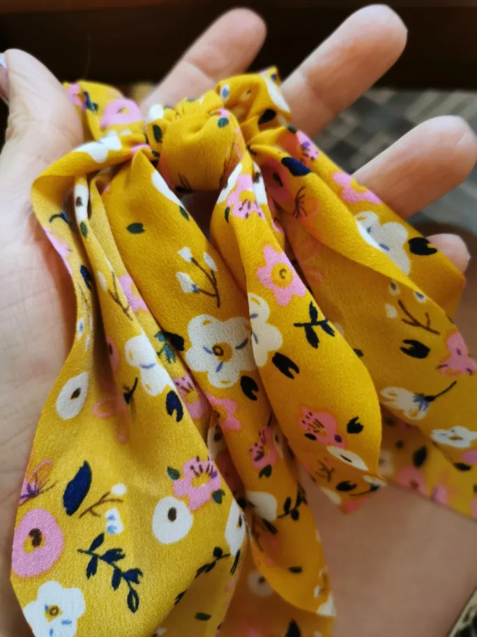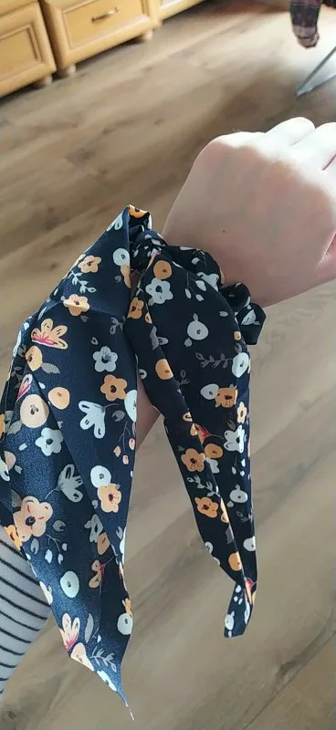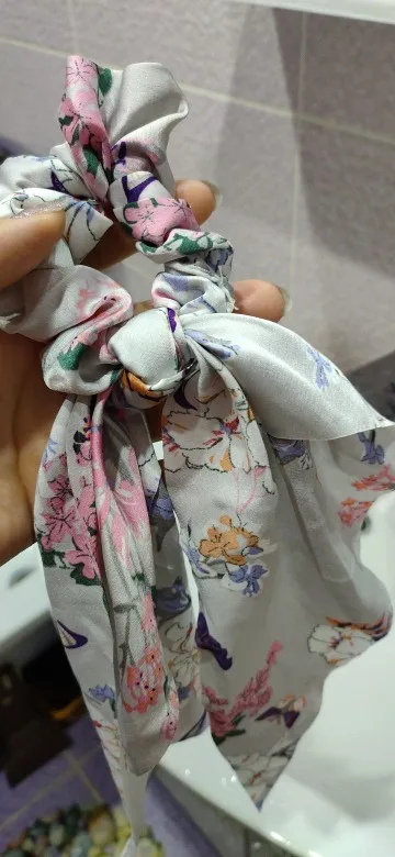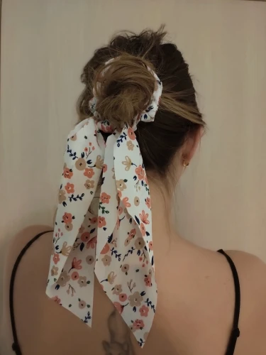 Очень красиво, просто огорчитесь, потому что не могу купить все принты. Очень женственный и романтичный с этой эластичной резинкой. При нормальном использовании держать в высоком хвосте, думая, что я выгляжу крестьянкой. Идеально и хорошего качества, настоятельно рекомендую ^