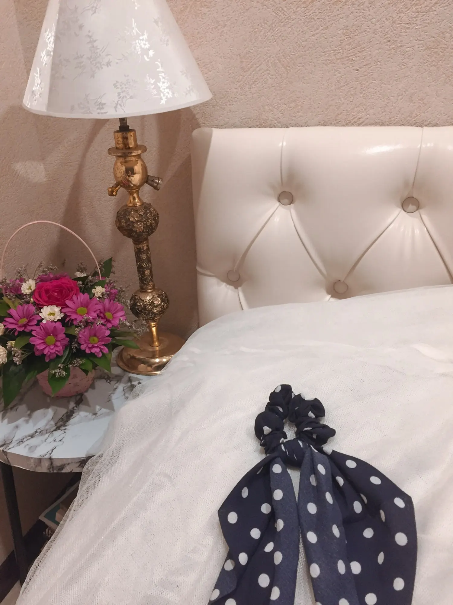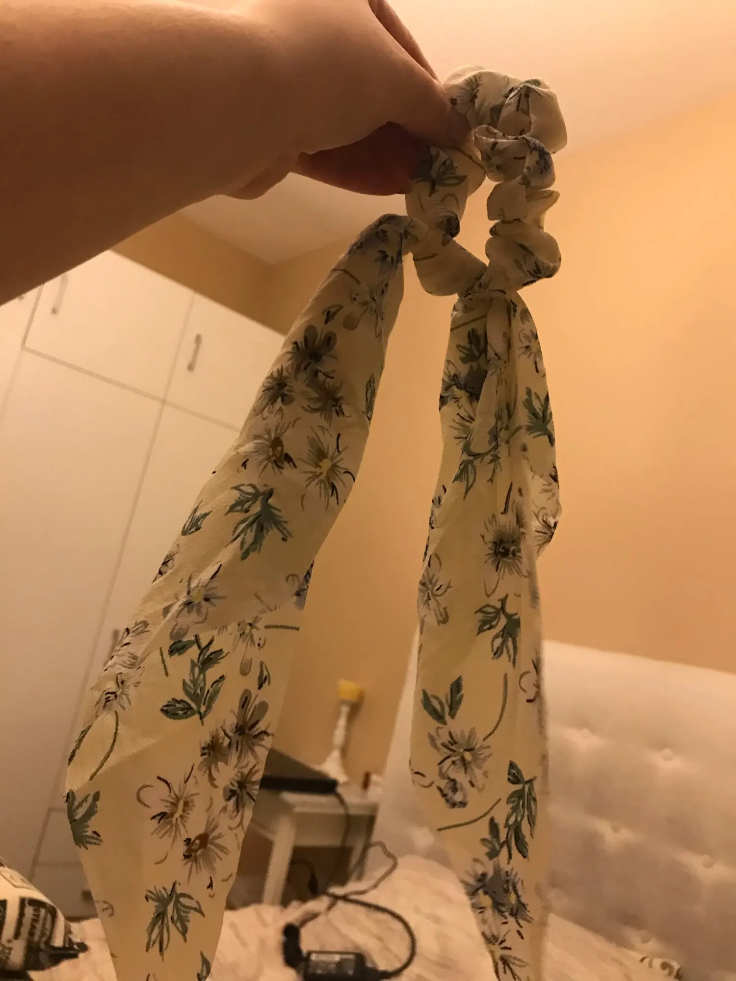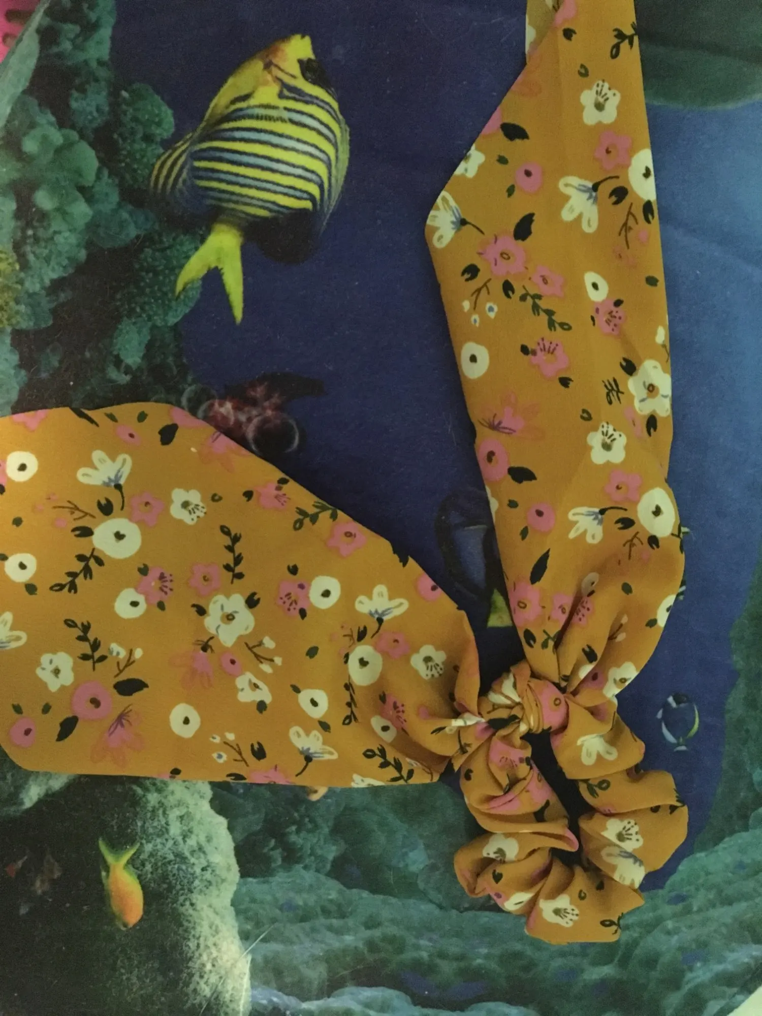Очень красиво, просто огорчитесь, потому что не могу купить все принты. Очень женственный и романтичный с этой эластичной резинкой. При нормальном использовании держать в высоком хвосте, думая, что я выгляжу крестьянкой. Идеально и хорошего качества, настоятельно рекомендую ^