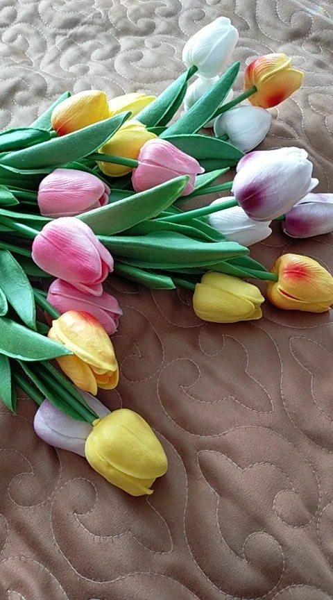 Очень красивые тюльпаны,как живые,быстрая доставка, заказала 10.03.2021 и получила 22.03.2021,так быстро ещё ничего АлиЭкспресс не приходило?