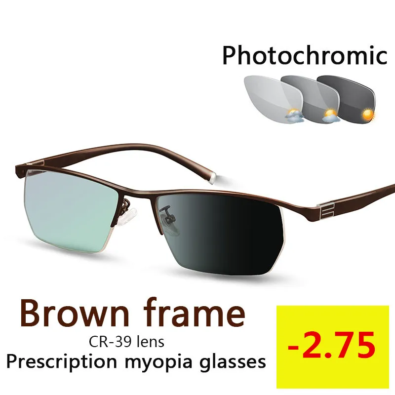 Очки солнцезащитные мужские фотохромные, компьютерные очки для близорукости, с защитой от синего излучения, с диоптриями-1,25,-1,75,-5,-5,5,-6,0