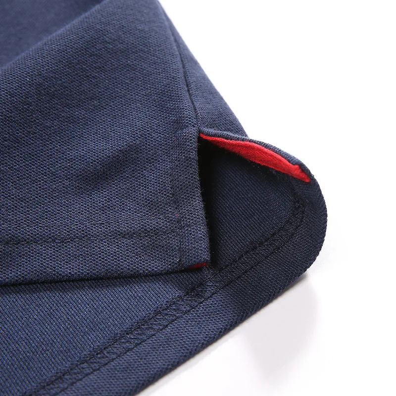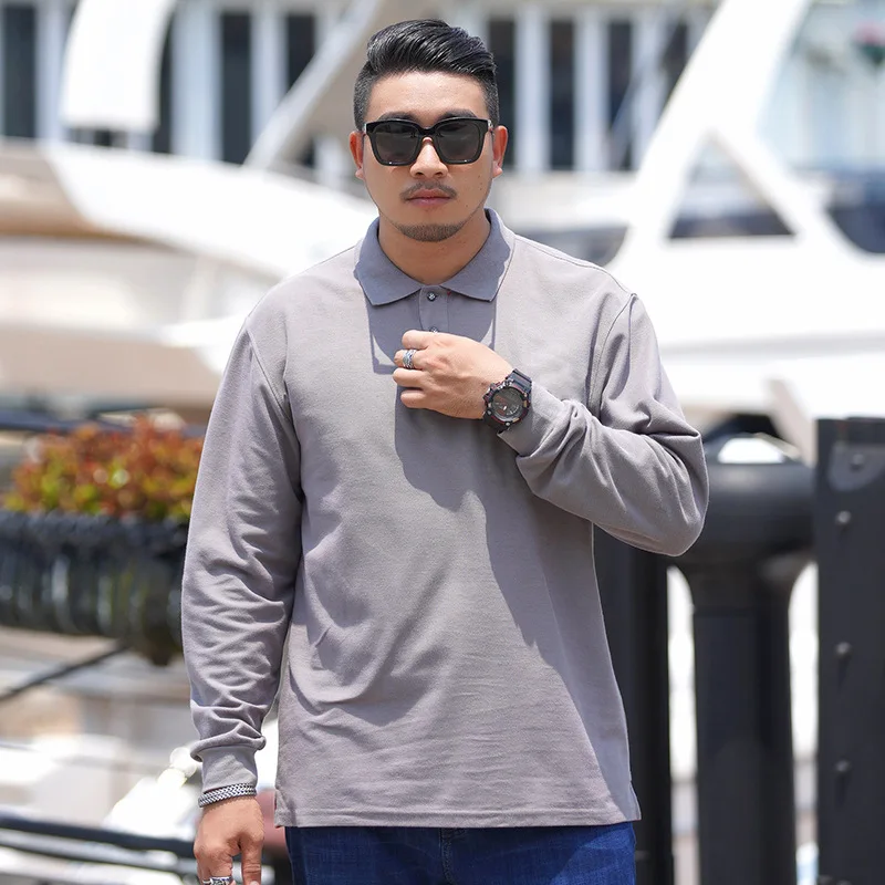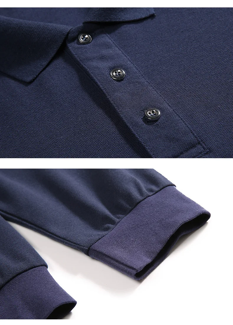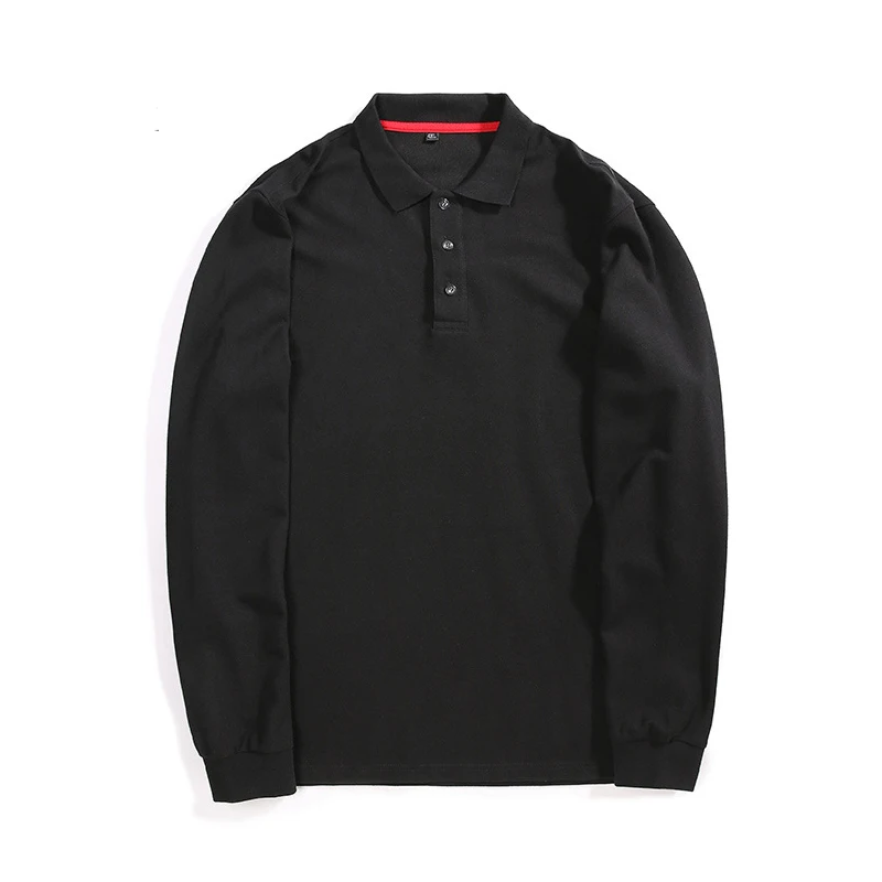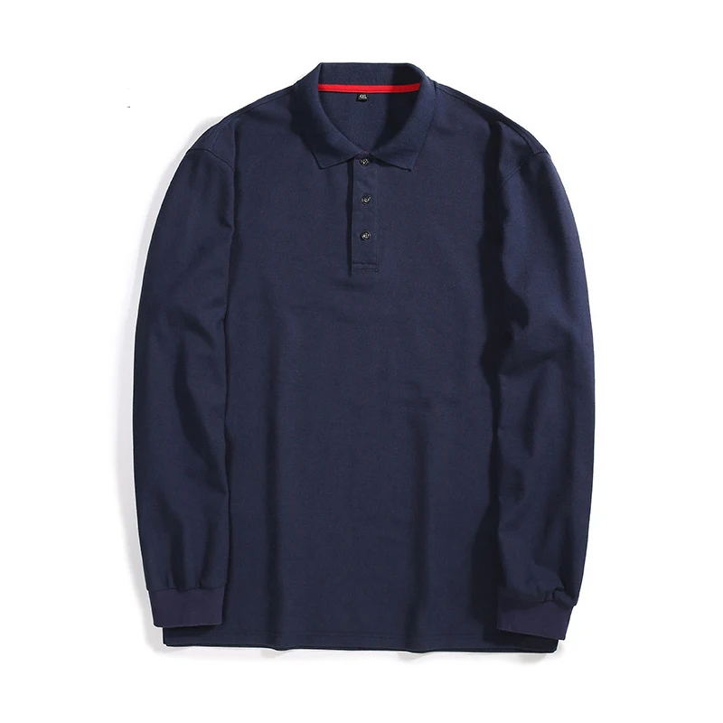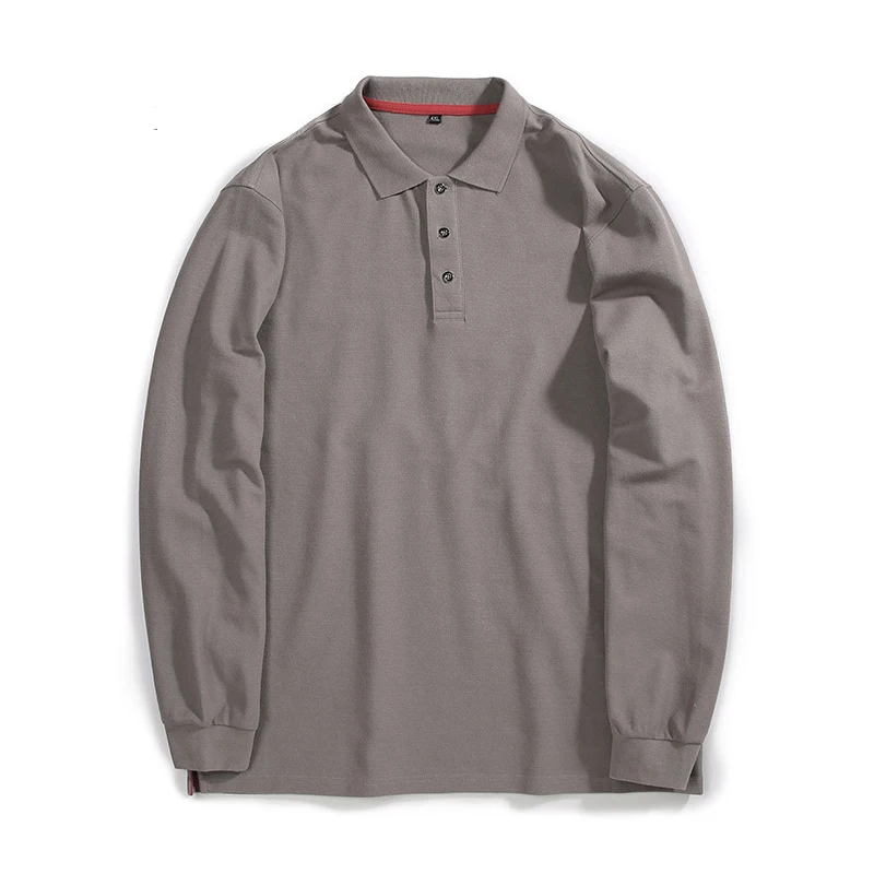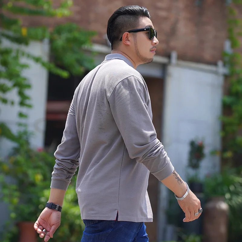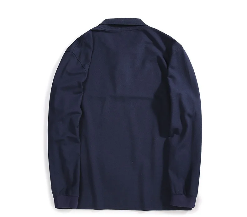 Рубашка-поло мужская хлопковая с воротником-стойкой и длинным рукавом, с V-образным вырезом