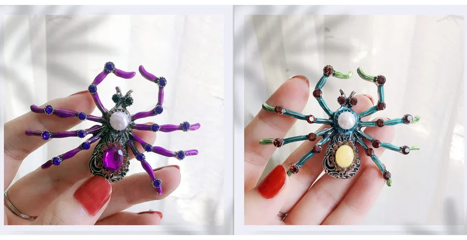 ЖенскаяМужская брошь Morkopela, эмалированная брошь-паук в виде брошь в виде насекомого Стразы, заколка-зажим для шарфа, украшение для одежды