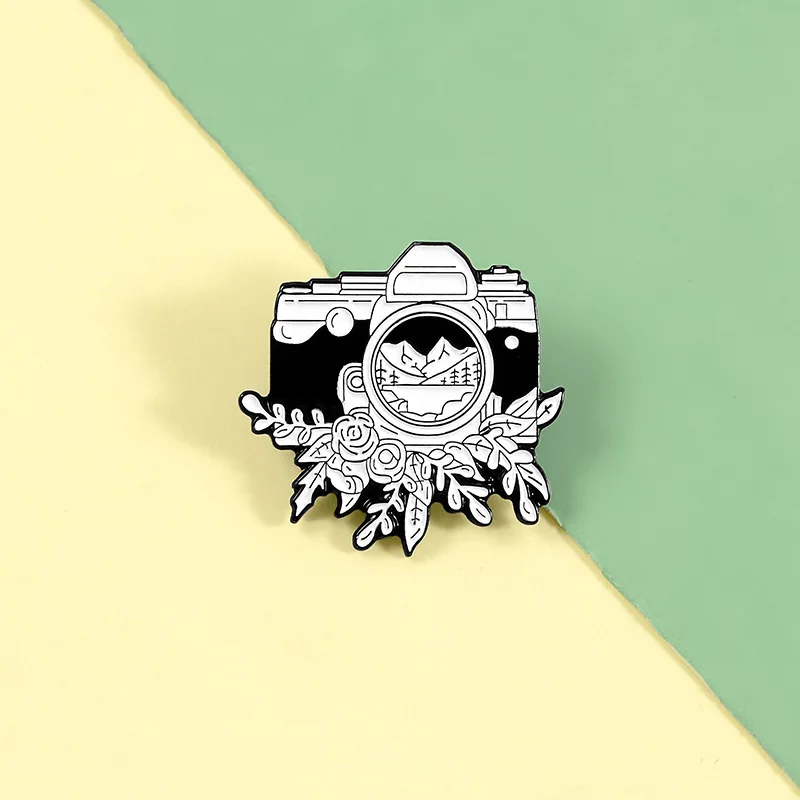Винтажная черно-белая эмалированная брошь для камеры креативный инд...