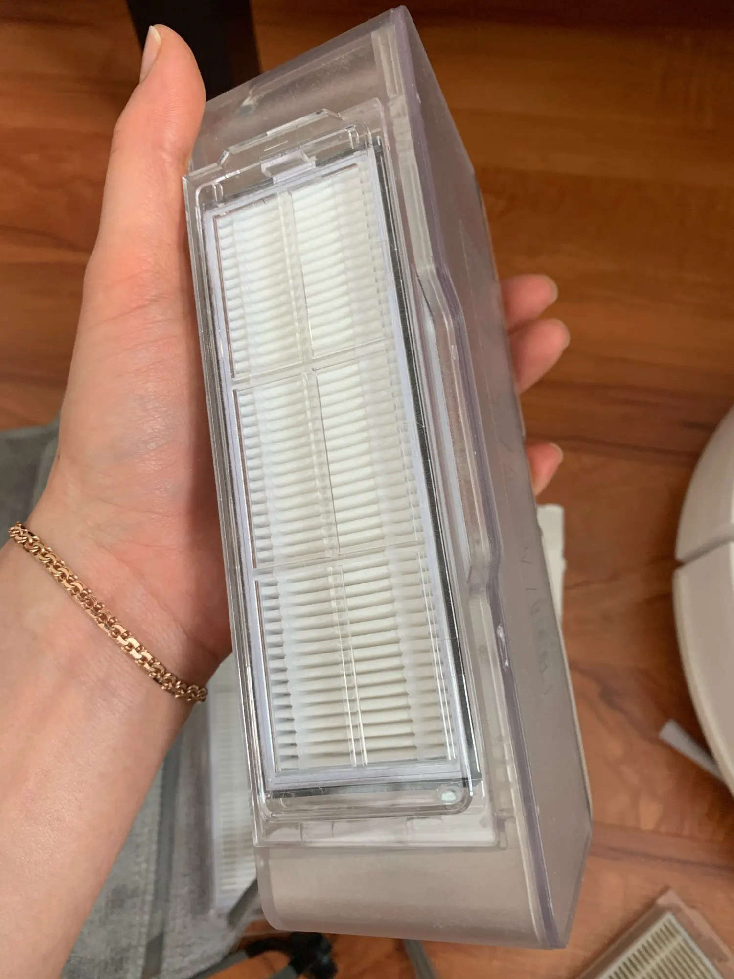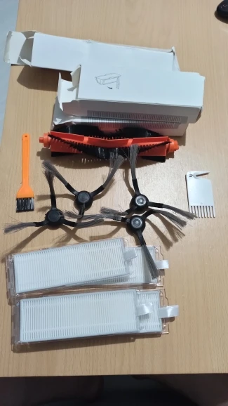 Комплектность как на фото продавца(щеточку я просто забыла сфотографировать). На mi robot vacuum mop-pro все подходит, кроме "защёлки" на корпусе фильтра. она буквально на миллиметр короче, чем на родном фильтре, из за этого фильтр держится не крепко, выпадает. Сам фильтрующий элемент вытаскивается, и если ваш родной корпус не сломан, то дело решается заменой самого бумажного фильтра.