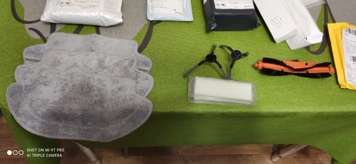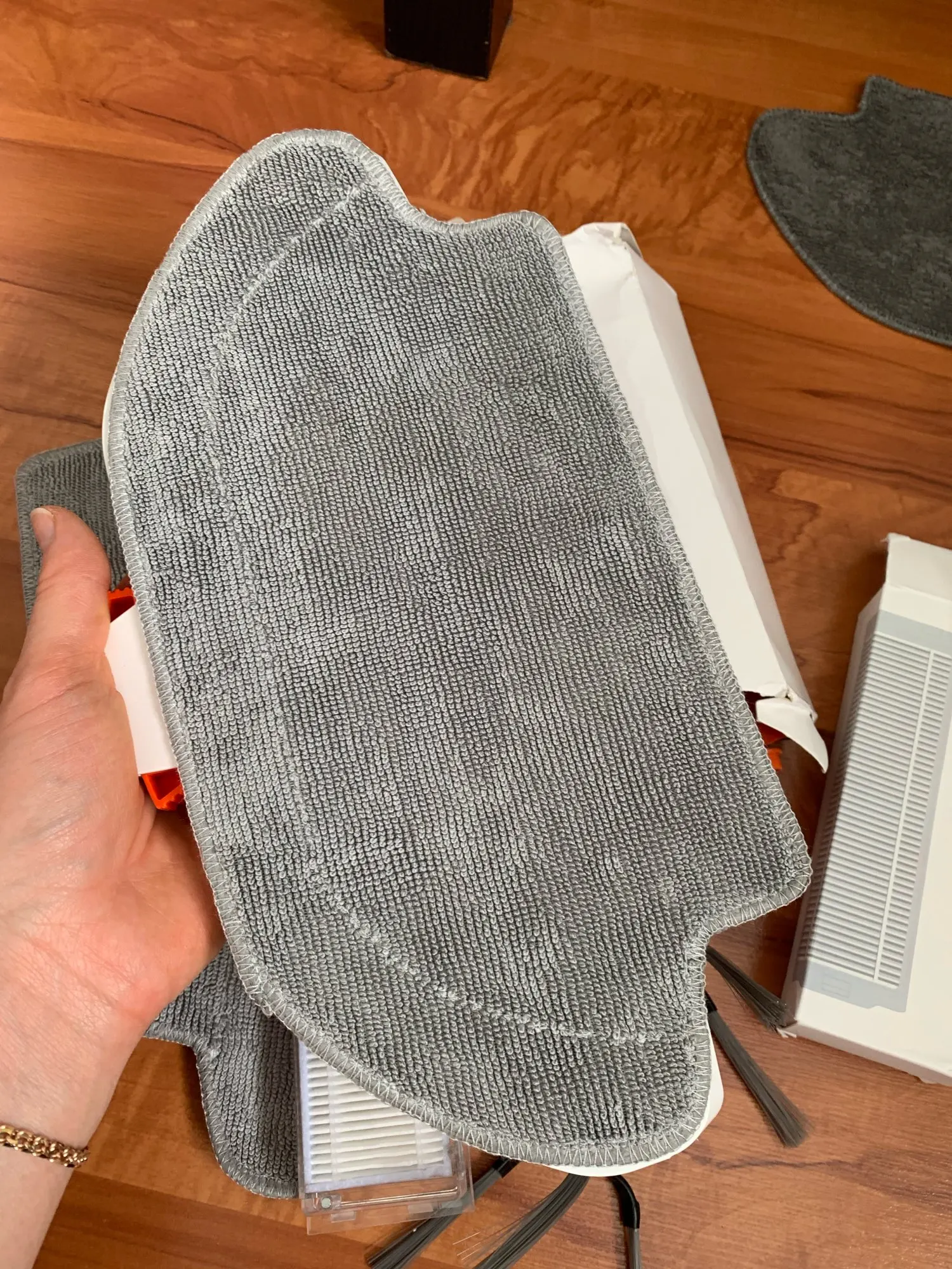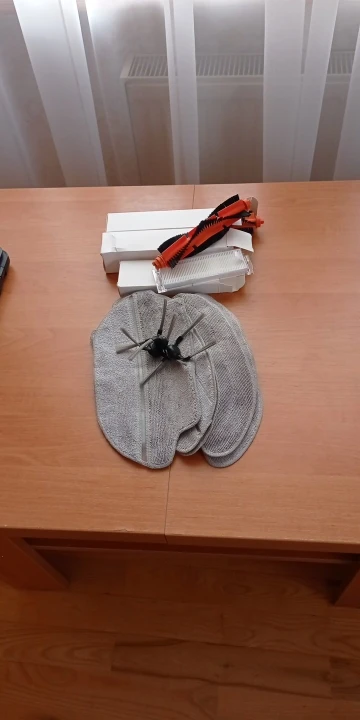 НЕРА фильтр реже на 20% оригинала, но сделан аккуратно. Тряпки пошиты неплохо, весят как и оригинал 20гр. Но смотрятся тоньше оригинала и просвечиваются на свет сильнее. Турбощетка от оригинала на глаз не отличишь, вроде такая же. Щёточки сильно деформировались при транспортировке, но думаю выправится. Черного цвета. Робот у меня белый. Ну это не страшно. В целом визуально твердая 4. Как то поведут себя тряпки?