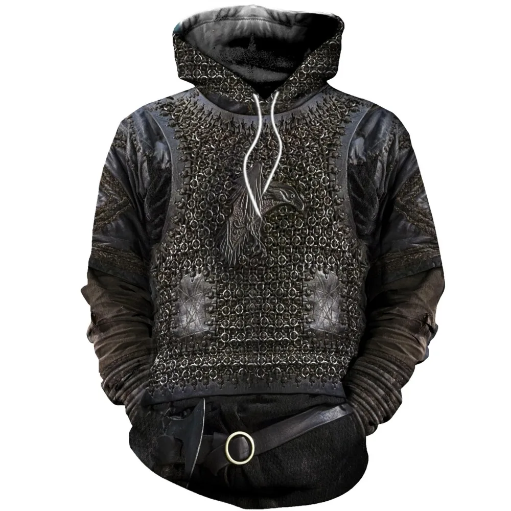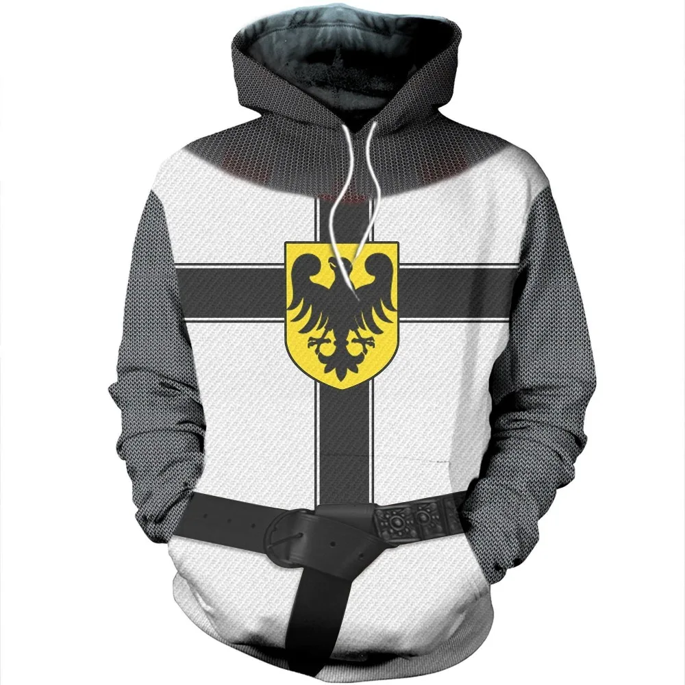 Толстовка мужская с капюшоном, кофта с 3D-принтом средневекового рыцаря, доспехов, тампларов, Харадзюку, куртка унисекс, косплей, Прямая поставка