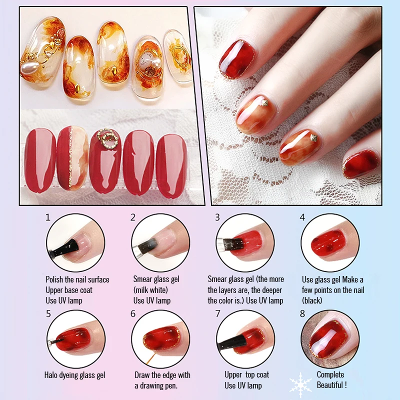 Длительный срок службы не менее 2-3 недель, фантастические и супер яркие ногти для вас.