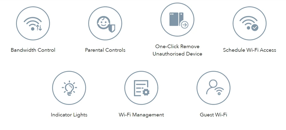 Huawei Share (нажмите для подключения), протокол Huawei HiLink и протокол 802,11 v, IPv6, PPPoE / DHCP/статический IP адрес/способы соединения WAN моста, таймер Wi-Fi, гость Wi-Fi, ограничение скорости устройства, фильтр mac-адреса, родительский контроль, vpn-прохождение, DMZ/виртуальный сервер...