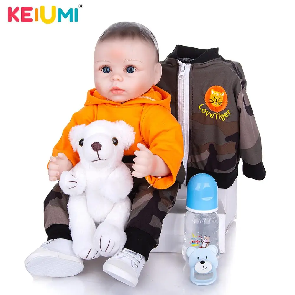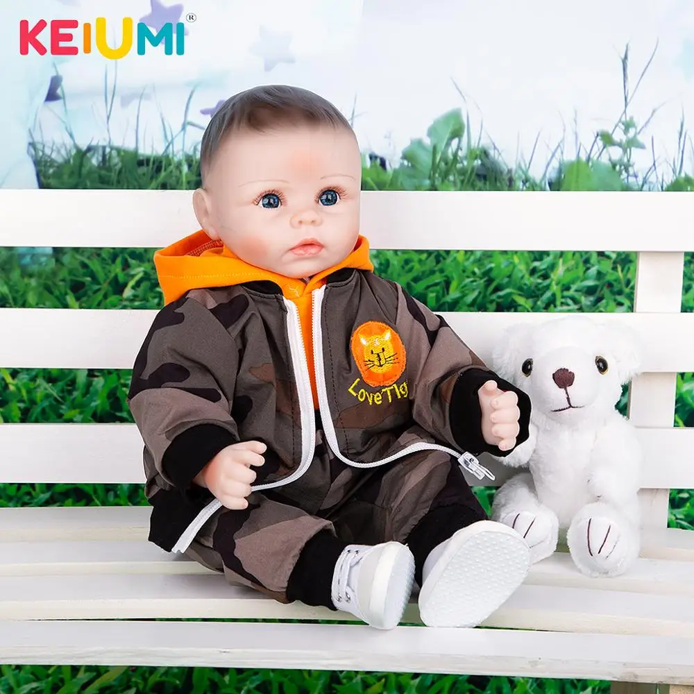 KEIUMI 18 дюймов красивый силиконовый Детский костюм куклы Reborn Реалистичная ткань тела Reborn Bebe кукла игрушка для детей подарки на день рождения