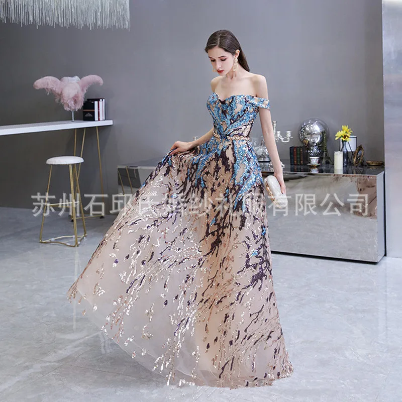 Новый стиль, женское платье на плечо, вечернее платье, выпускное платье, вечернее платье