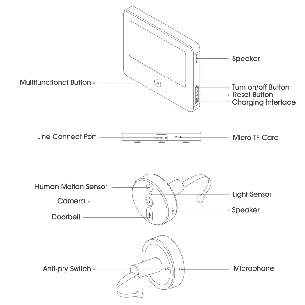 Независимо от того, где вы находитесь, проверьте переднюю дверь в любое время Описание: Вид глаз Шесть дорог Посмотрите все снаружи двери Защитите дверь Не отпускайте никаких подозрительных обстоятельств Часы в режиме реального времени Проверьте переднюю дверь в любое время AI Обнаружение человека Недопустимые сигналы тревоги фильтра Чрезвычайно длительный срок службы батареи Не нужно часто заряжать Широкоугольный объектив 161 ° * Более широкое видение Вернуться из Оффлайн Видео отключено и загружено при наличии сети H.265 кодирование видео Плавная прямая трансляция и Быстрая загрузка Оборудование Mijia Живи безопаснее и умнее HD ночное видение 940nm инфракрасный светильник ночного видения Интеллектуальное распознавание лица AI Подключение приложения: Загрузите приложение Mi Home в Google Play или APP Store, создайте учетную запись Mi, затем Войдите в систему. Включите дверной звонок и подключите маршрутизатор WiFi, затем отсканируйте код с помощью камеры. Приложение поддерживает настройку языка Мути, если соединение с приложением не работает, откройте настройки приложения и переключите регион в Китай, а затем повторно подключите. Основные параметры Бренд: Xiaomi Модель: LSC-M01 Угол Линзы: 161 ° Толщина опорной двери: 35 - 110 мм Экран: 5,0-дюймовый IPS дисплей Способ питания: Micro USB DC 5V/2A Аккумулятор: 6000 мАч Разрешение видео: 1280*720P Разрешение экрана: 480*854P Поддержка диафрагмы кошачий глаз: 16 - 40 мм Расстояние обнаружения человека: 3 метра Беспроводной стандарт: IEEE802.11b/ g/ n Диапазон частот: 2,4 ГГц Способ хранения: Облачное хранилище (72H), карта Micro TF MAX 32GB (не входит в комплект) Посылка Вес: 1,000 кг Размер посылка: 18,00x15,00x10,00 см/7,09x5,91x3,94 дюймов Упаковочный лист: 1 * экран кошачий глаз 1 * фиксированное основание 1 * Камера 1 * зарядный кабель 1 * кабель для фиксации 1 * обшивка кабеля 1 * отвертка 2 * винты M3X20 2 * винты M3X40 2 * винты M3X60 2 * винты M3X80 1 * китайское руководство