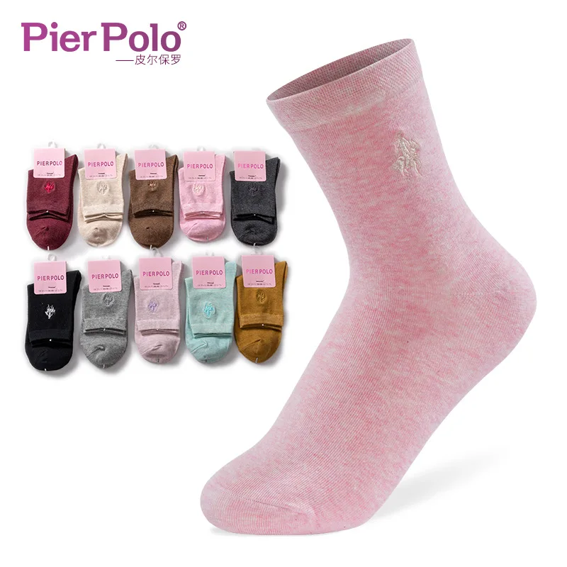 Причал поло новые женские повседневные носки в деловом стиле с вышивкой без пятки средней длины из хлопка; Однотонные дышащие носки в подарок для женщин Размеры; Большие размеры 35-41