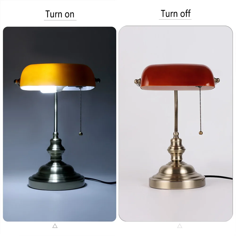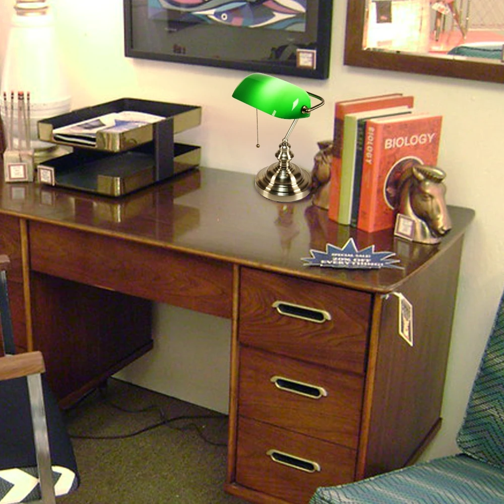 Классическая винтажная простая настольная лампа для банкира E27 с переключателем, абажур из зеленого стекла, настольные светильники для спальни, кабинета, домашнего чтения