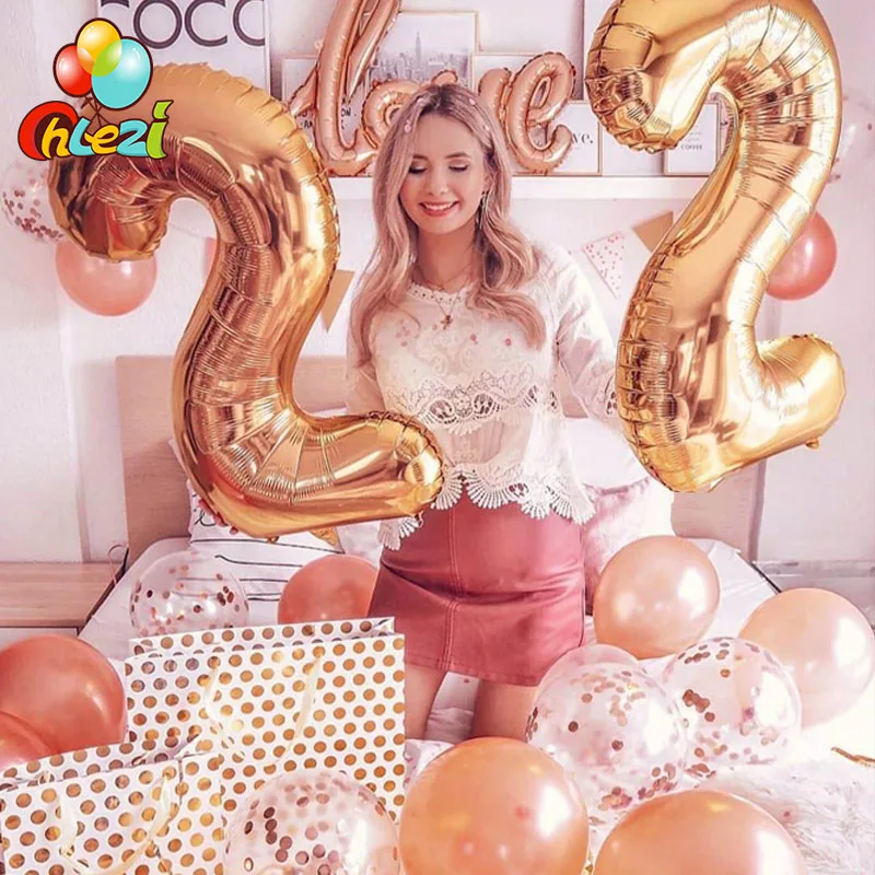 2022 40 дюймов цифры, фольгированные воздушные шары, украшения для дня рождения, 1 2 3, золотой, серебряный, розовый, синий гелиевые праздничные принадлежности, декор для будущей мамы