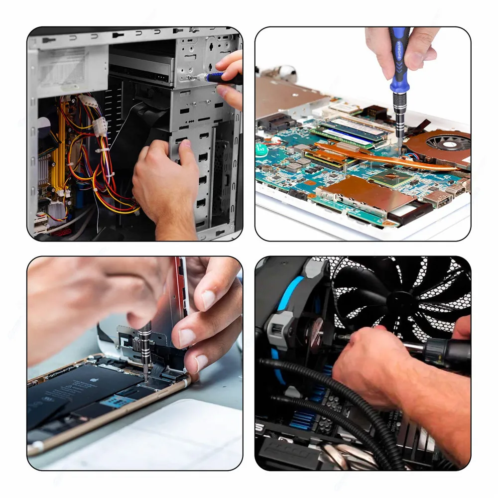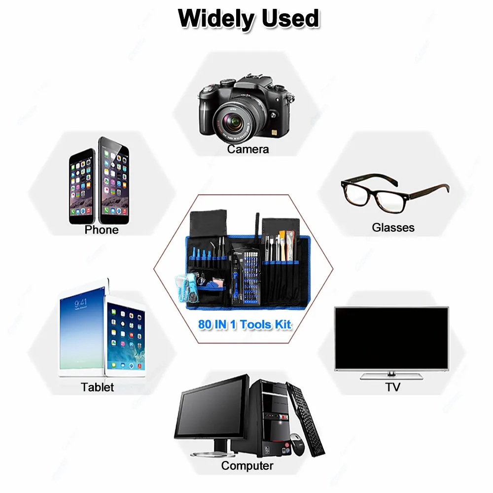 80 в 1 набор профессиональных ремонтных отверток состоит из тысяч ремонтных данных, с наиболее полным 56 сменный Магнитный головкой и 24 штуки утилитарных инструментов. Он подходит для ремонта и строительства всех видов компьютеров, а также для ремонта электронных устройств, таких как ноутбук, компьютер, macbook, мобильный телефон, планшет, PS4 и контроллер Xbox.