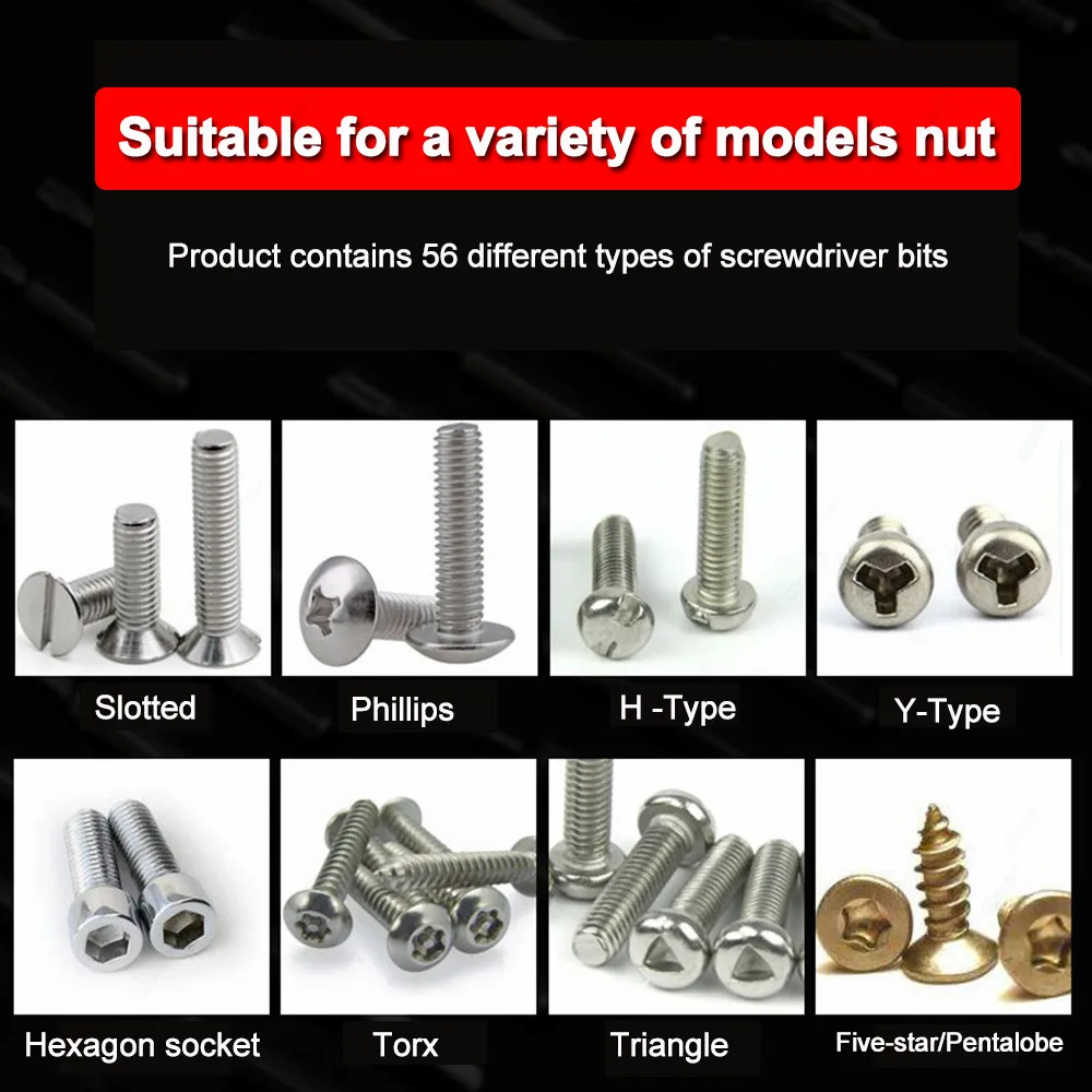 ►Профессиональная комбинация бит, ремонт различных продуктов: Профессиональная команда по ремонту тщательно отобрала 15 моделей, 56 различных размеров головки, подходит для большинства компьютерных винтов на рынке.